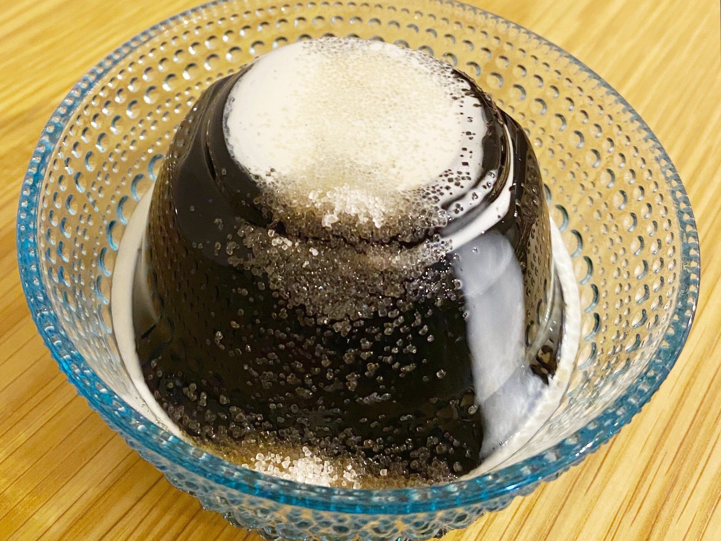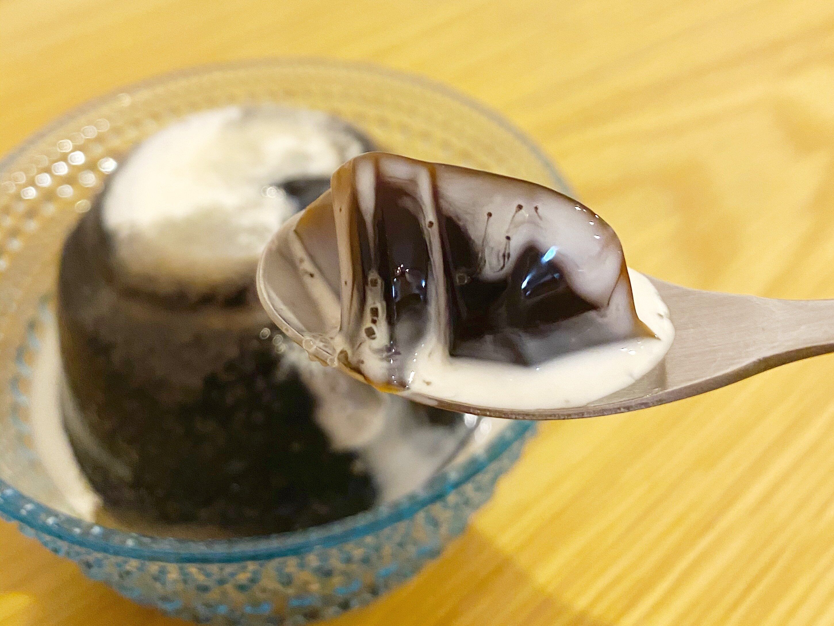 ぷるぷる食感にブラウンシュガーのジャリジャリとした食感が加わると、また変わった食感を楽しめます。