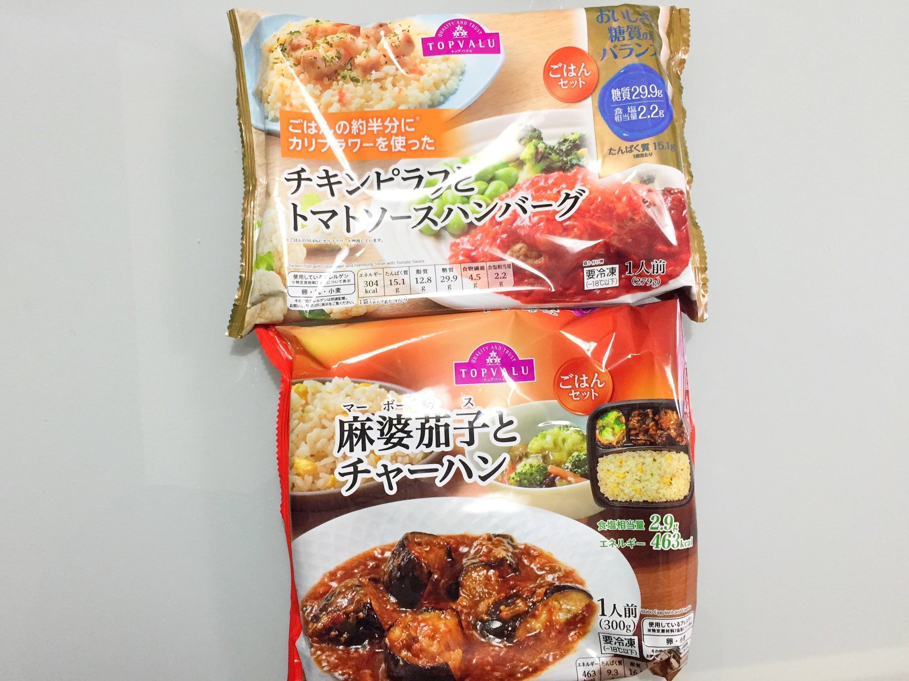 このワントレー冷凍食品シリーズには「糖質・塩分」を通常よりもカットしている商品もあります。例えば、こちらのチキンピラフはお米にカリフラワーが混ぜて糖質をカットする工夫がされているのです。ニーズに合わせた商品展開は大手のイオンだからこそできる技!