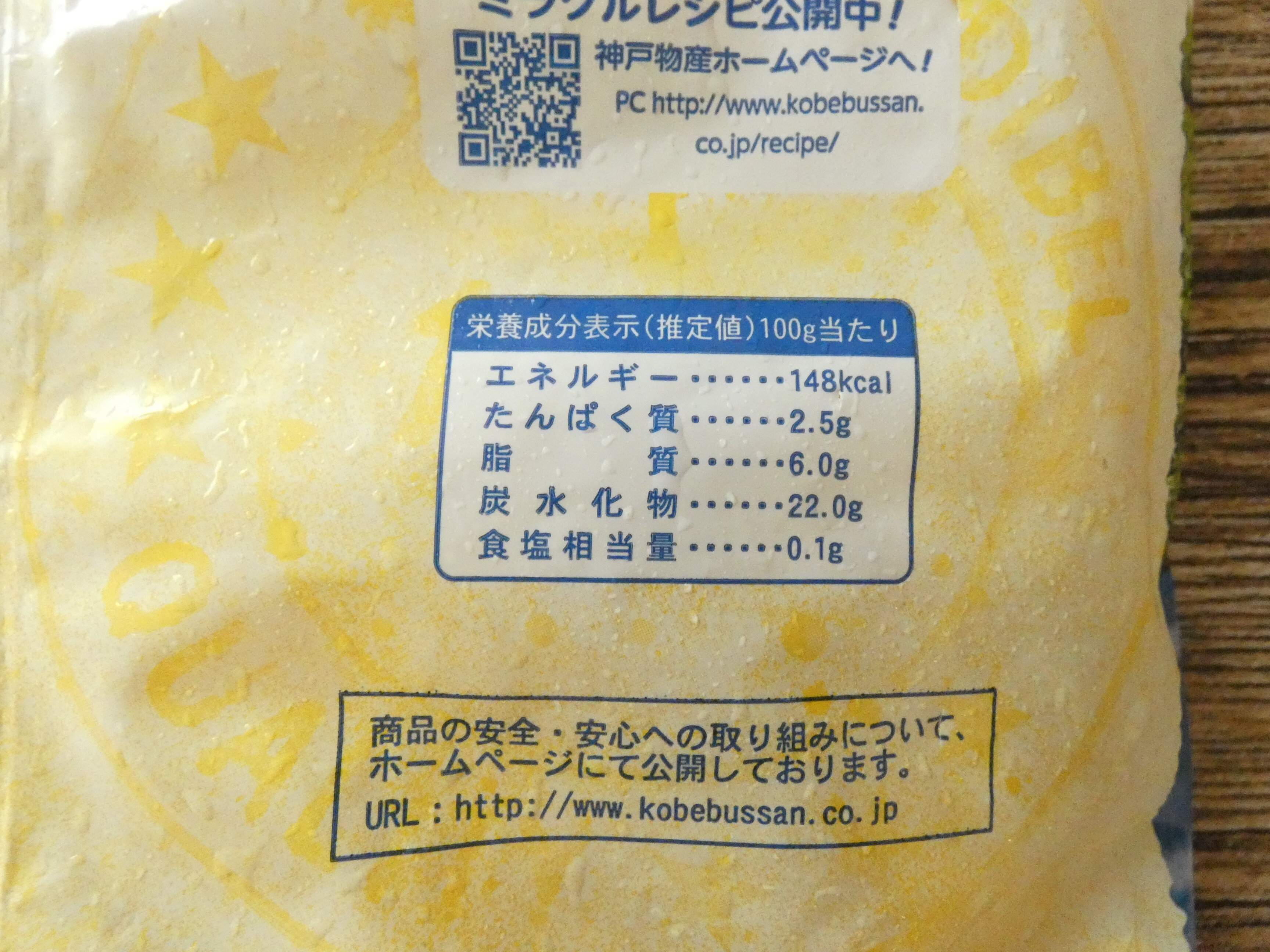 栄養成分表示を見ると100g当たり148kcalです。フライドポテトにするのはもちろん、ボリュームたっぷりなメインやサブのおかずが簡単につくれて、便利な冷凍食品です。