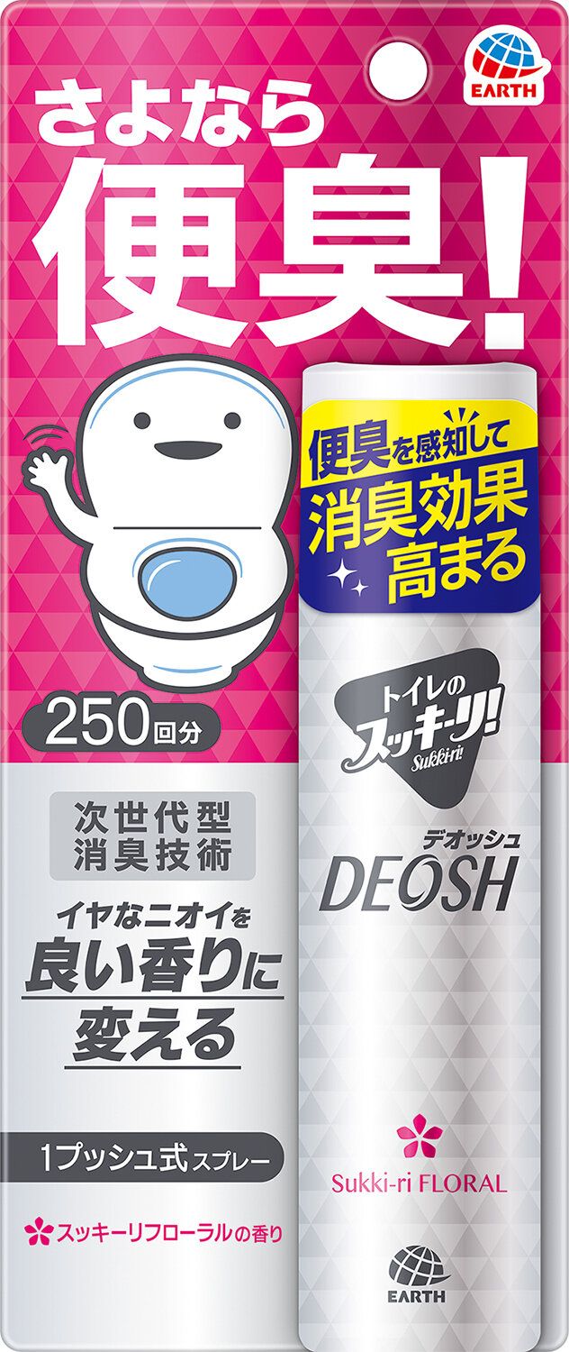 「トイレのスッキーリ! DEOSH 1プッシュ式スプレー スッキーリフローラルの香り」オープン価格/アース製薬 ☏0120・81・6456