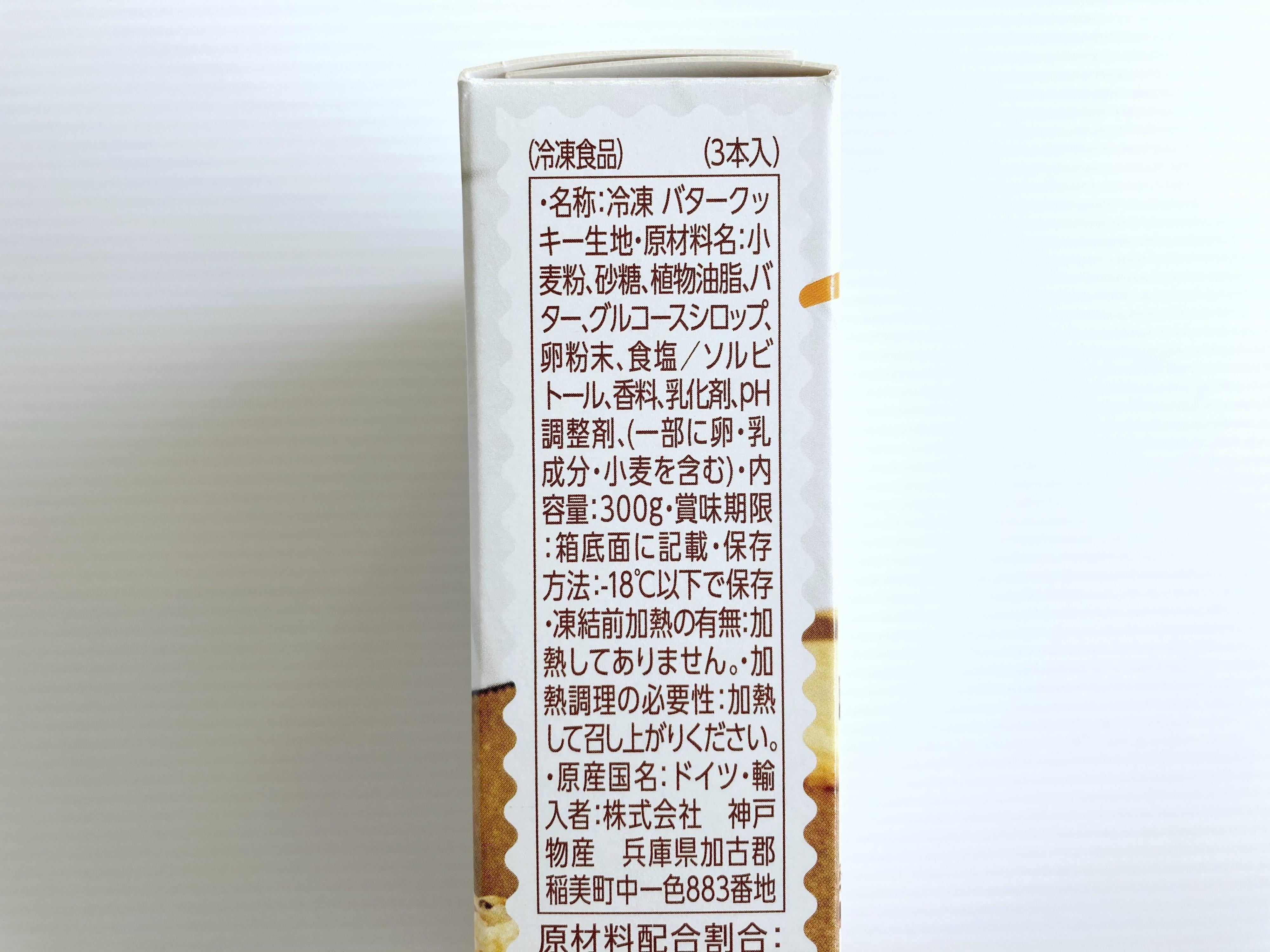 こちらの「冷凍バタークッキー生地」は、300gで3本入りで354円。