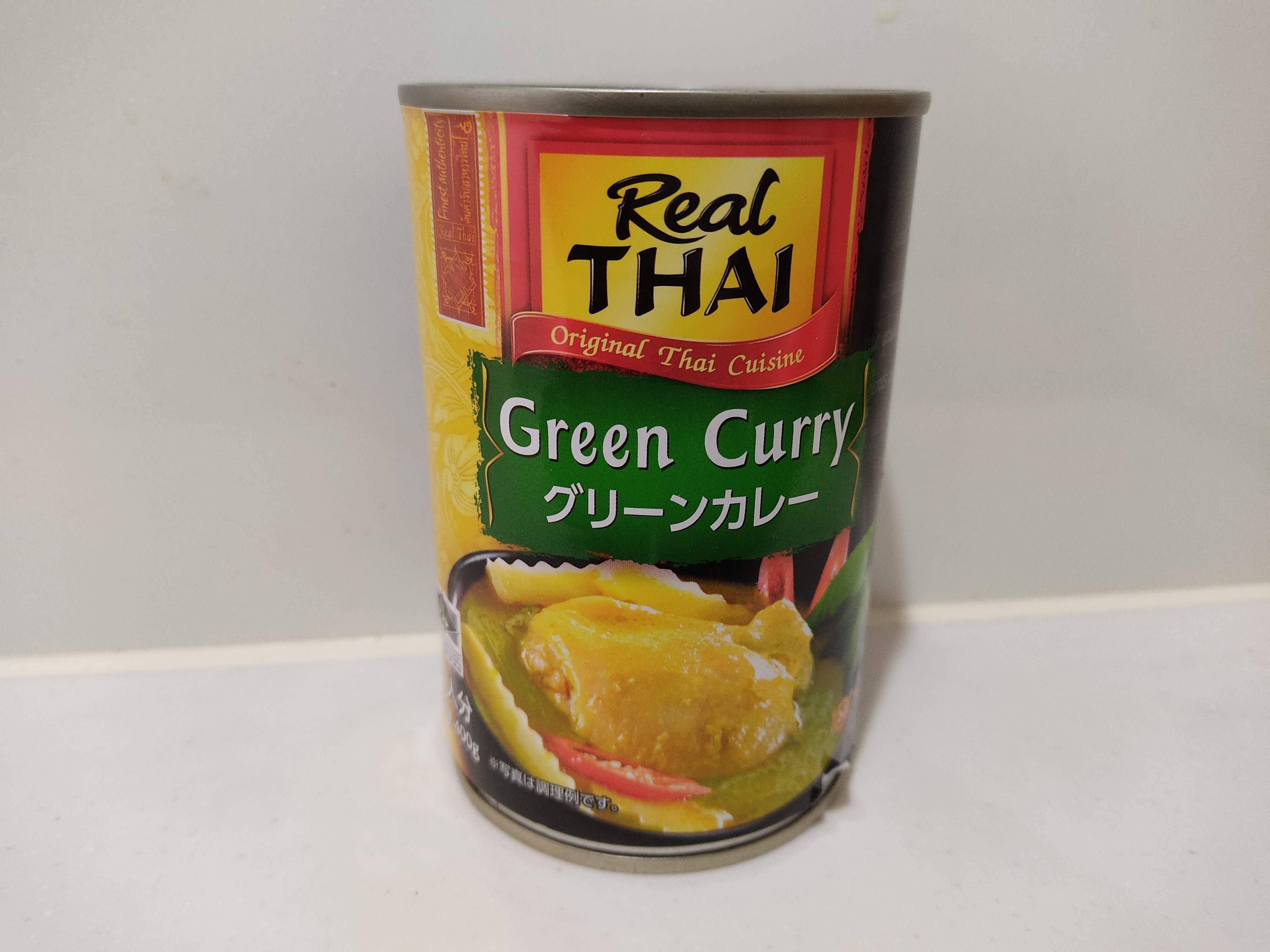 グリーンカレー缶は、400g・203円。タイ直輸入のグリーンカレーが2人前入った缶詰です。細切りにしたタケノコもたっぷり入っていて、家にいながら本格的な味を楽しむことができます。