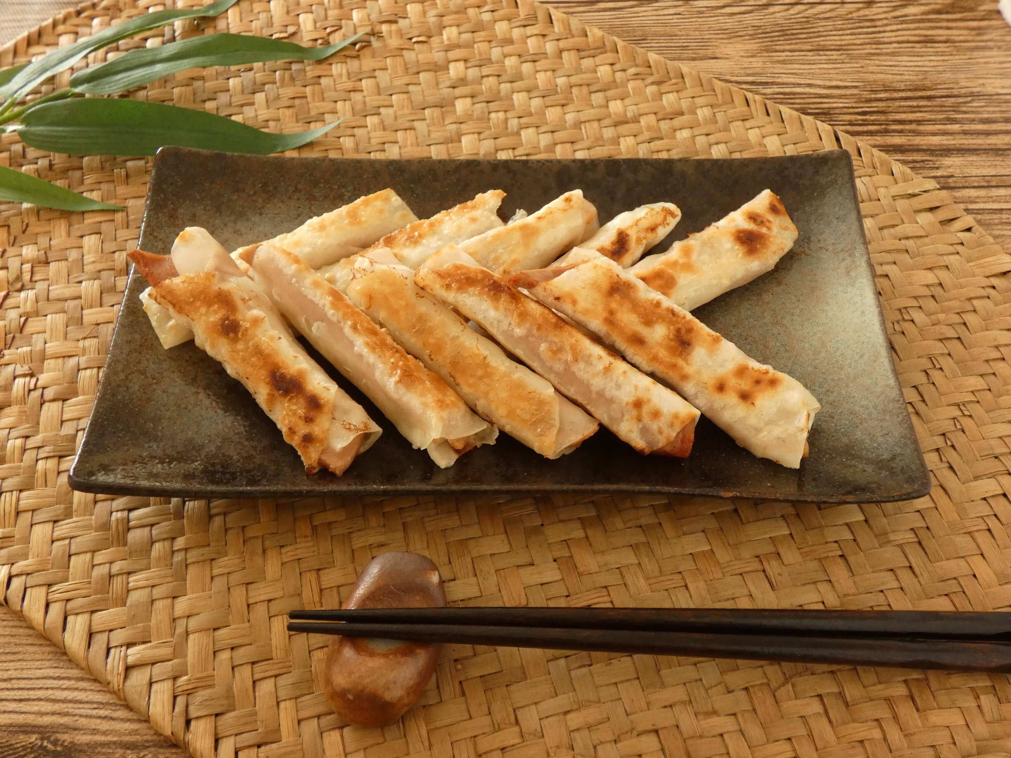 ランチョンミートを餃子の皮で包んで焼いてもおいしいです。薄切りにして巻いたり、細切りにして他の野菜と一緒に巻いてもOK。おつまみにピッタリな1品になります。