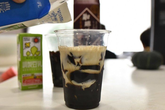 「珈琲ゼリー」に甘味がしっかりとついているので、牛乳とも豆乳ともよく合って、子どもも喜ぶドリンクになりました。
