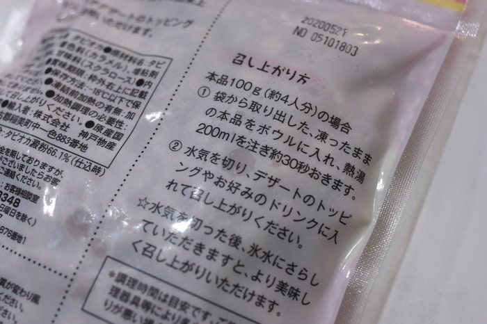 冷凍の「インスタントタピオカ」(税別275円/購入時の価格)は熱湯につけるだけで、食べられるタピオカです。