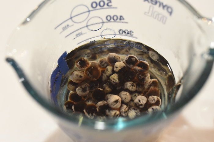 海外食材を扱うお店で売られているタピオカは乾燥のものが多く、水につけて置いたあとにゆでる必要がありますが、業務スーパーの「インスタントタピオカ」は熱湯につけるだけでOK。しかもわずか30秒なので、すぐに食べられます。