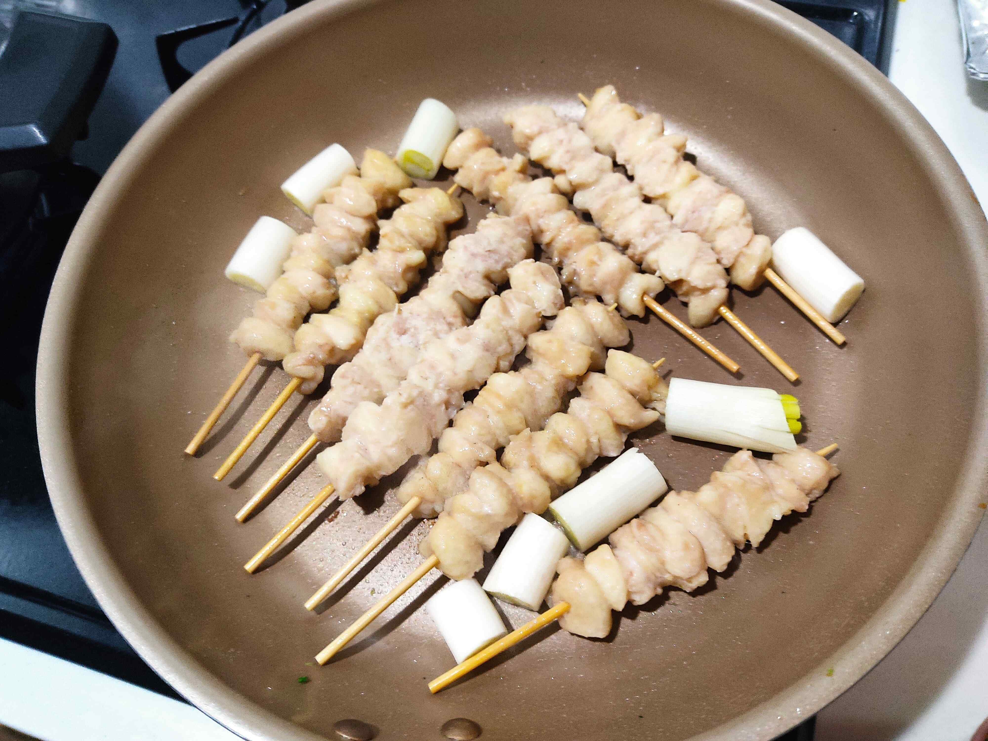 大きさは、居酒屋で提供される物とほぼ同じサイズ。小ぶりにカットされたぼんじりが、1串に10~13個ずつ刺さっています。「冷凍のままフライパンで焼く」という説明書きに従って、さっそく焼いてみました。