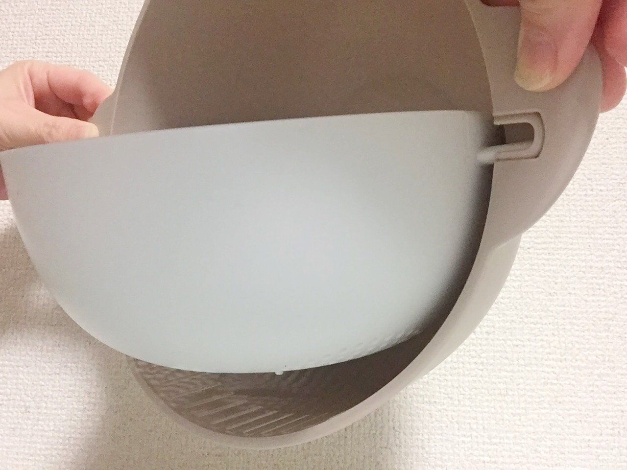ボウルが180度回転するので蓋のようにかぶせて使う事も可能です。