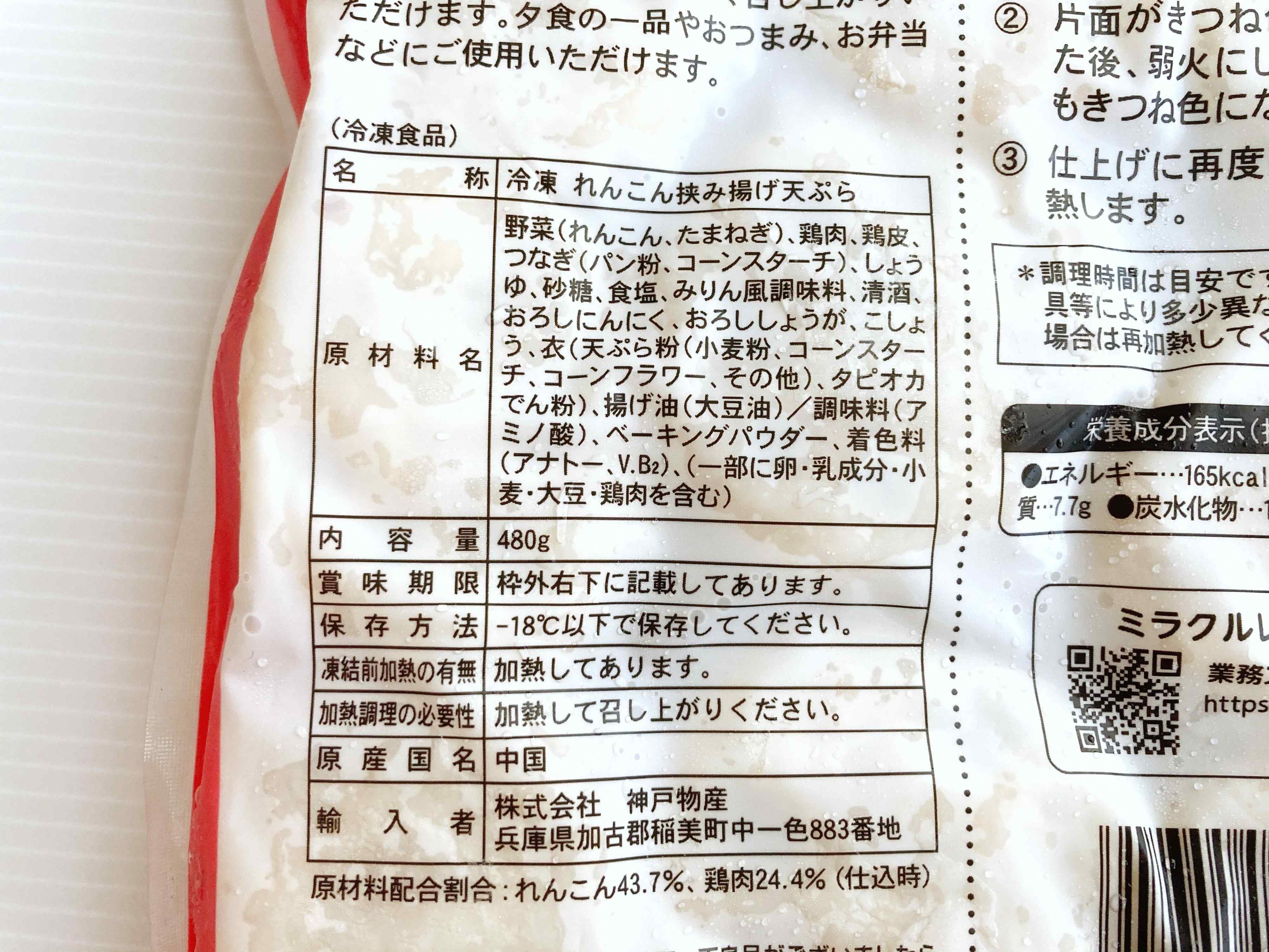 こちらの「れんこんの挟み揚げ天ぷら」は、480gで398円!