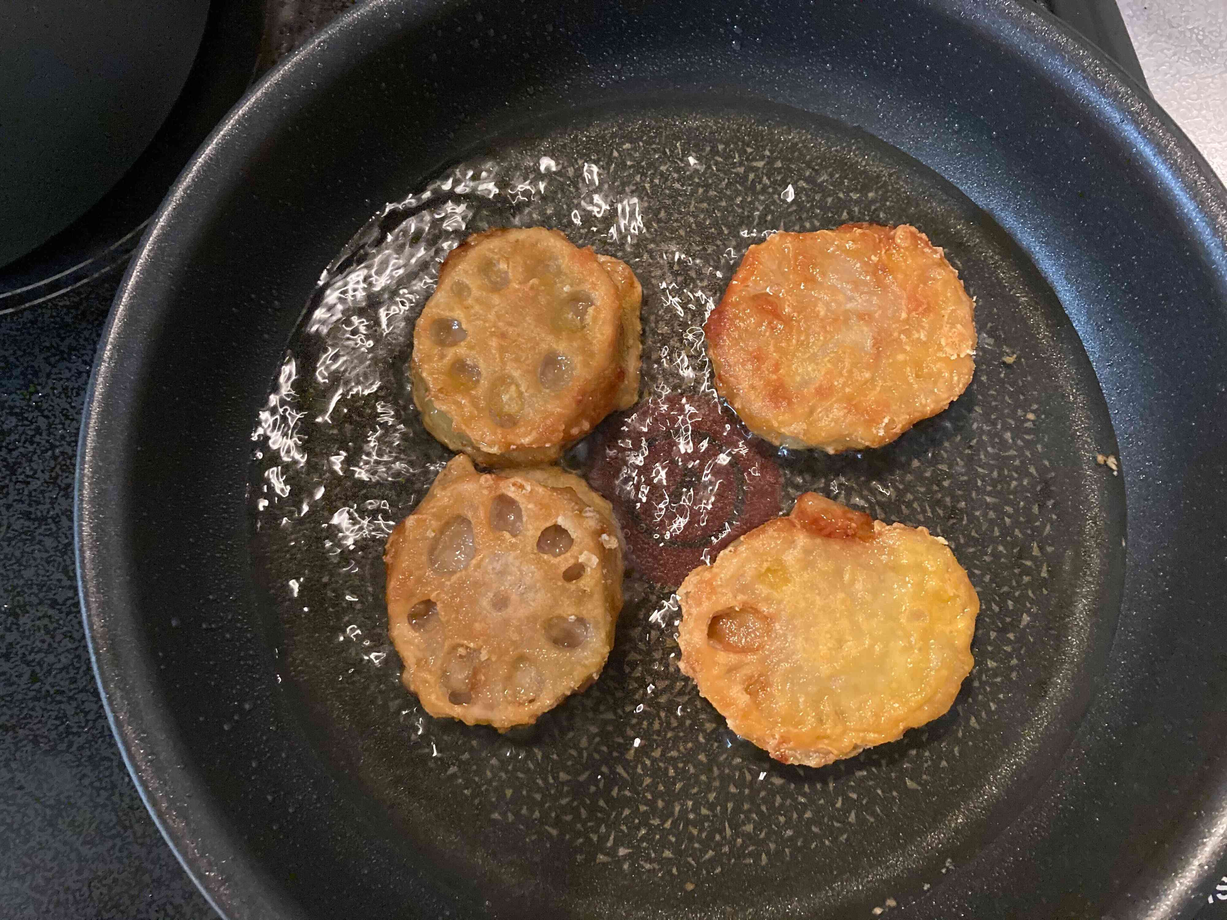 私は、片面3分ずつ揚げ焼きしたあと、仕上げに裏返して30秒揚げ焼きしました。