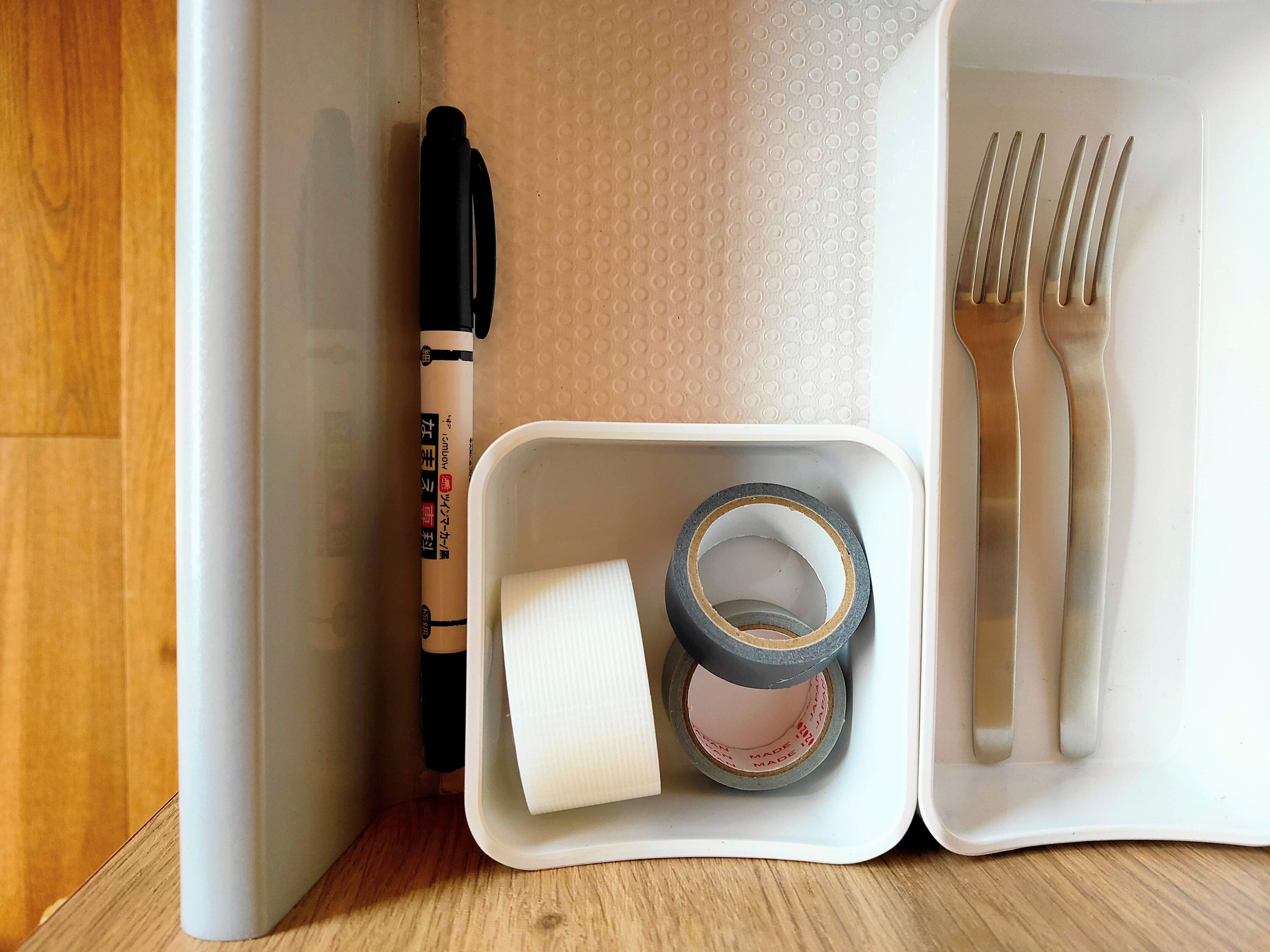 私は、キッチンの引き出しの隅にマスキングテープと一緒に収納することにしました。養生という目的ではなく日常のラベルとして使いたいと考えています。ラベルライターでわざわざ作るほどでもないけれど、ちょっとラベルが欲しいな。そんな時に活躍してくれると思います。