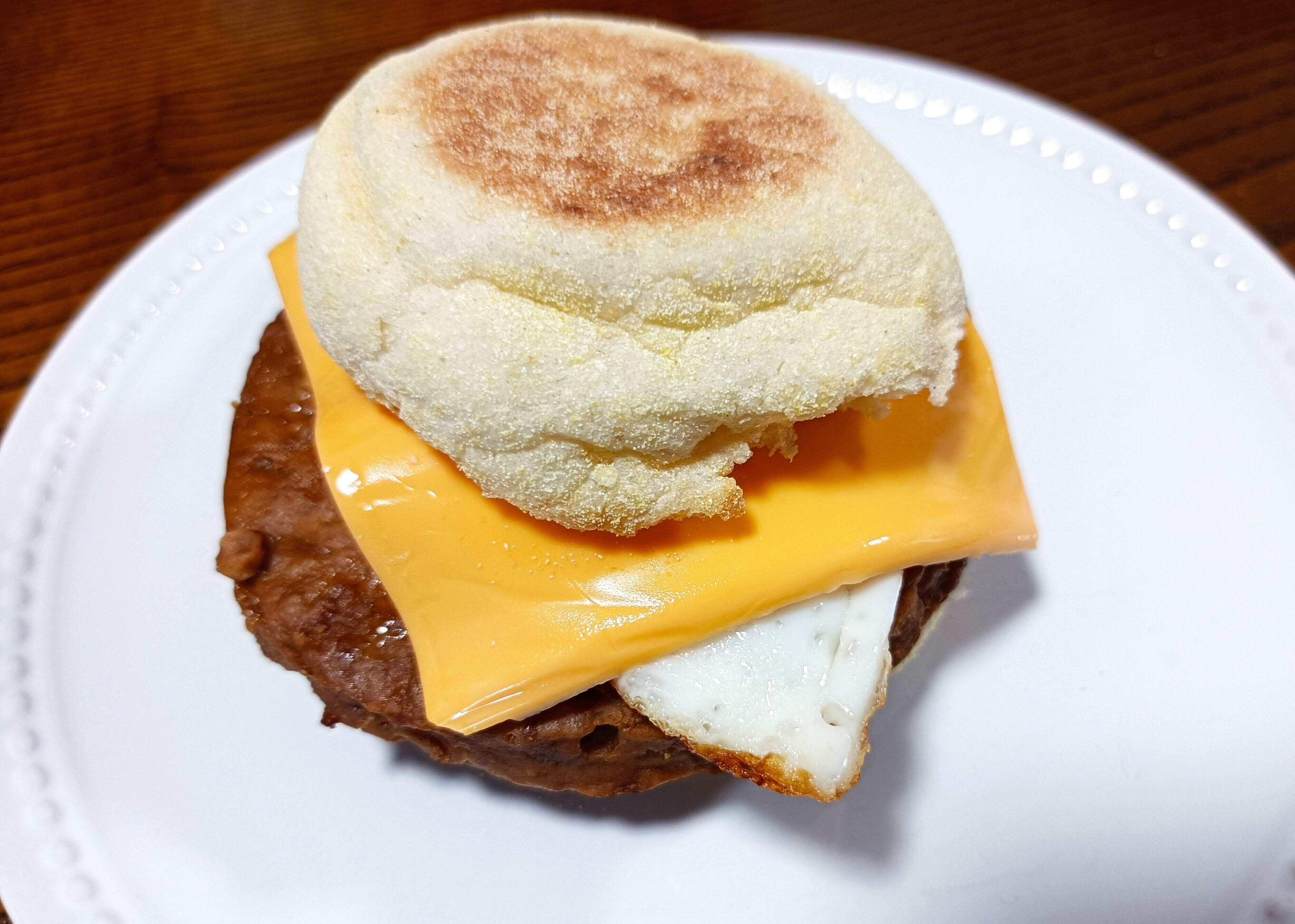 今回は、イングリッシュマフィンのパンに挟んでハンバーガーにしてみました。