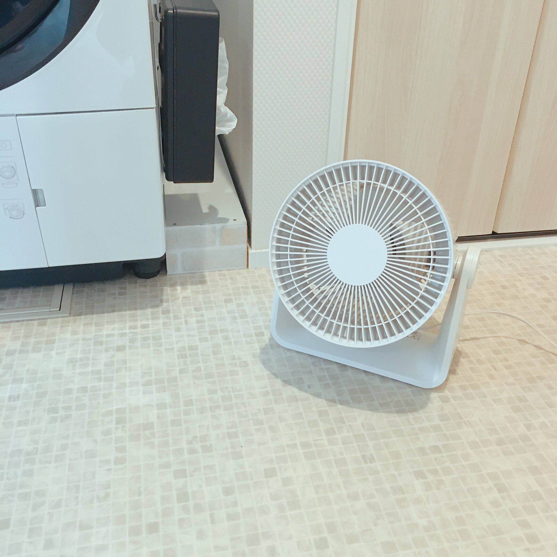 また部屋干しの際に、洗濯物に直接サーキュレーターの風を当てることで乾燥までの時間を短縮することができます。無印のサーキュレーターは上下の角度調整ができるので洗濯物の真下に置くと効率的です。