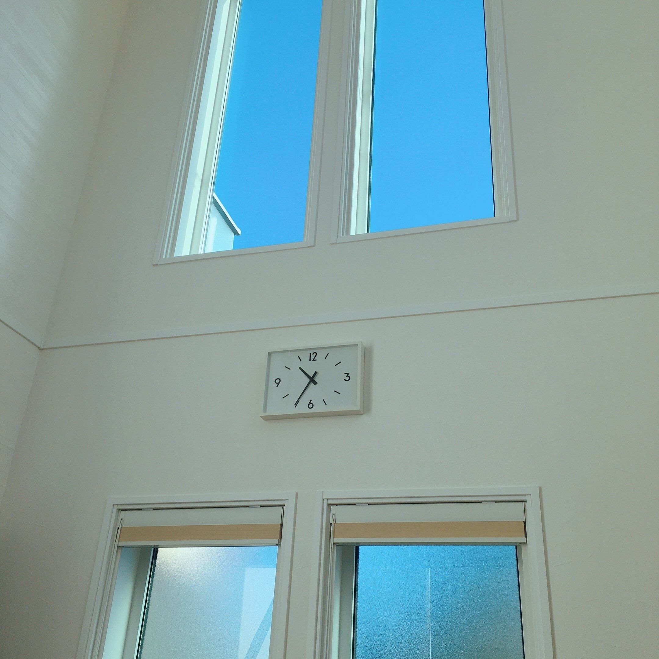 吹き抜けのあるリビングにはどんな時計にしようかとしばらく悩んでいました。