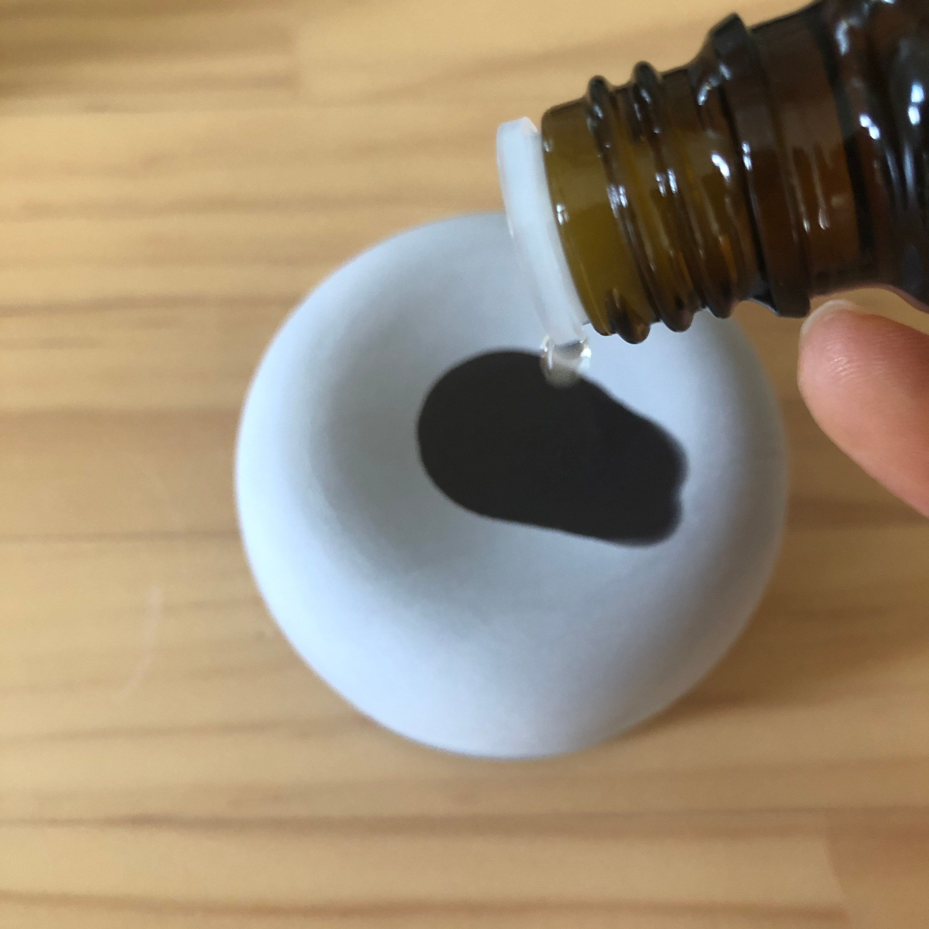 2、お気に入りのエッセンシャルオイルを用意し、真ん中のくぼみに直接5〜10滴垂らすだけ。
