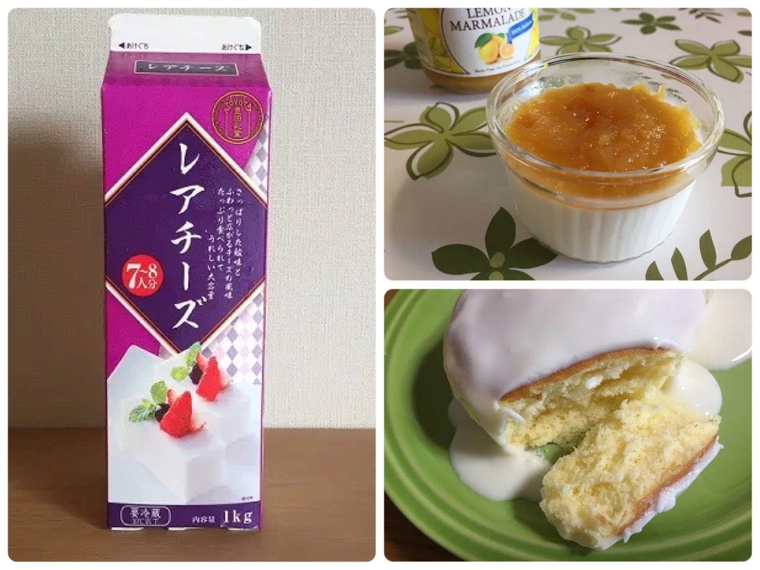 市販のチーズ味の蒸しパンに溶かしたレアチーズをかければ、即席のWチーズケーキに!とっても美味しいですよ☆