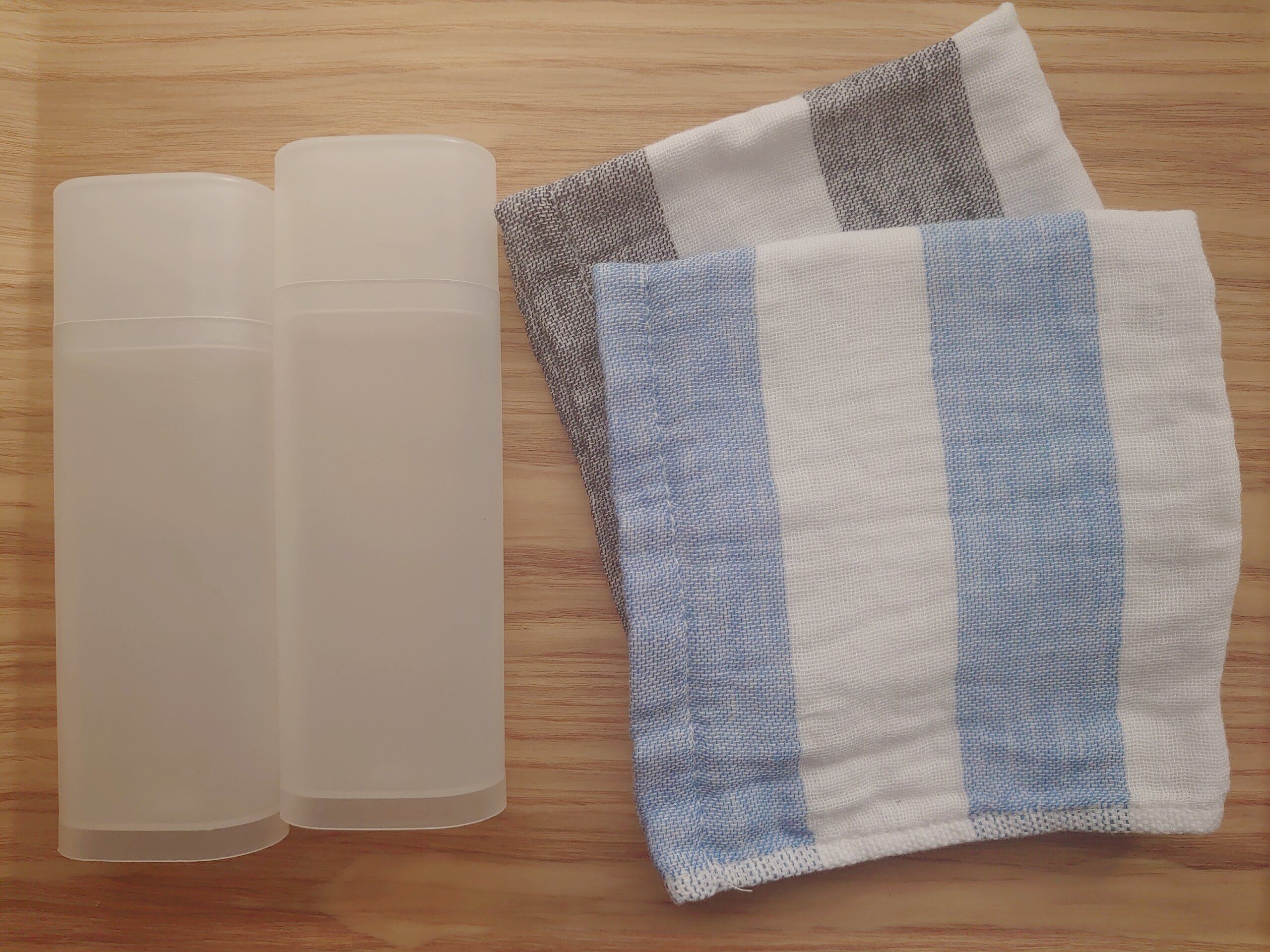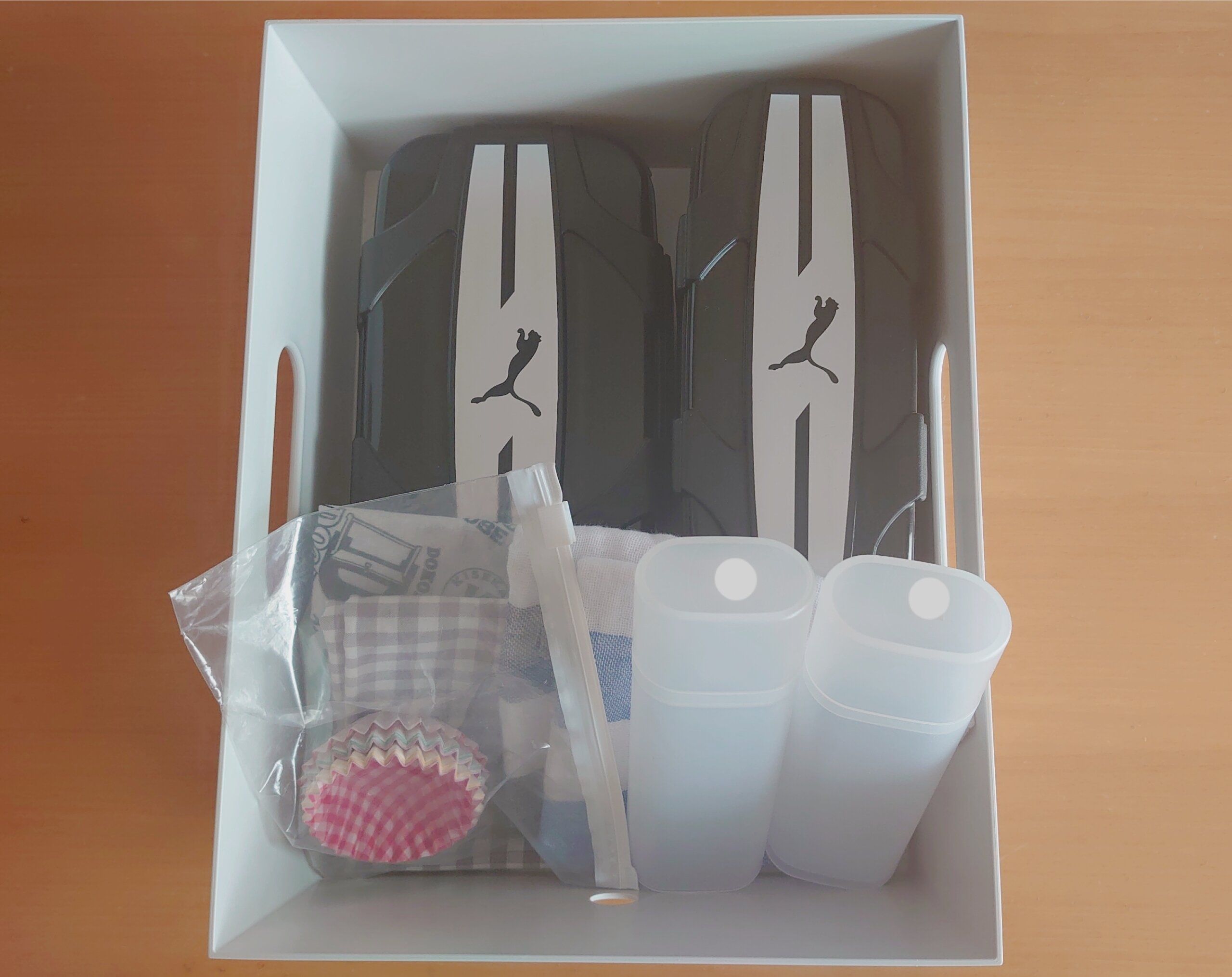 無印良品のめがね・小物ケースを、おしぼりケースとして使っています。幼稚園の遠足、小学校の運動会や校外学習などお弁当が必要な時の持ち物リストにあるおしぼり。家族で出かける時はウェットティッシュを使用していたので、入園後に準備したものの1つです。