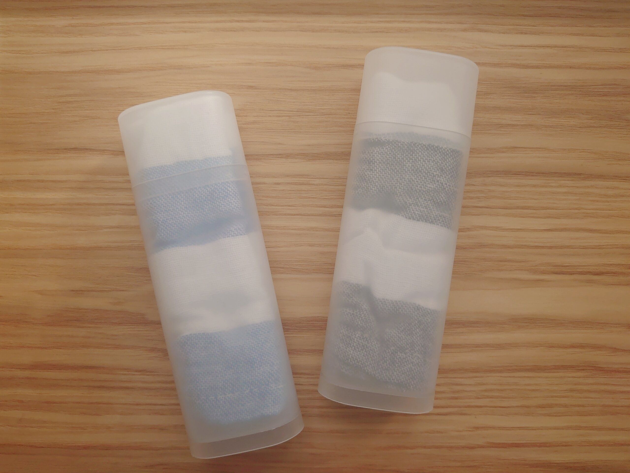 無印良品の文房具コーナーでおしぼり入れにちょうど良さそうなケースを発見!子どもでも簡単に取り扱えてサイズ感もぴったりでした。