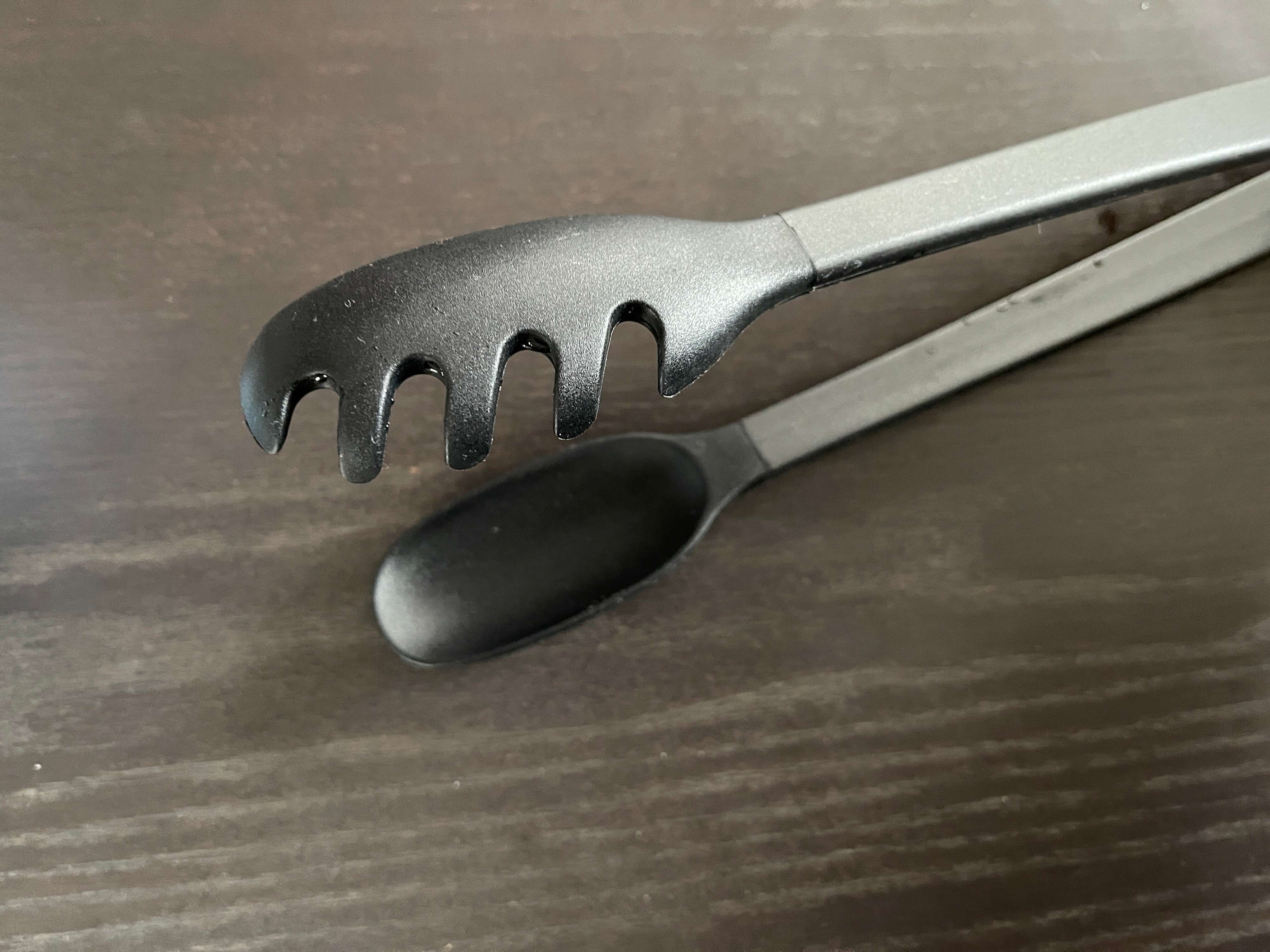 同じシリーズの調理スプーンは食洗機が使用できるので思わずいっしょに食洗機に入れてしまいそうになりますが、このトングは「食洗機使用不可」です。