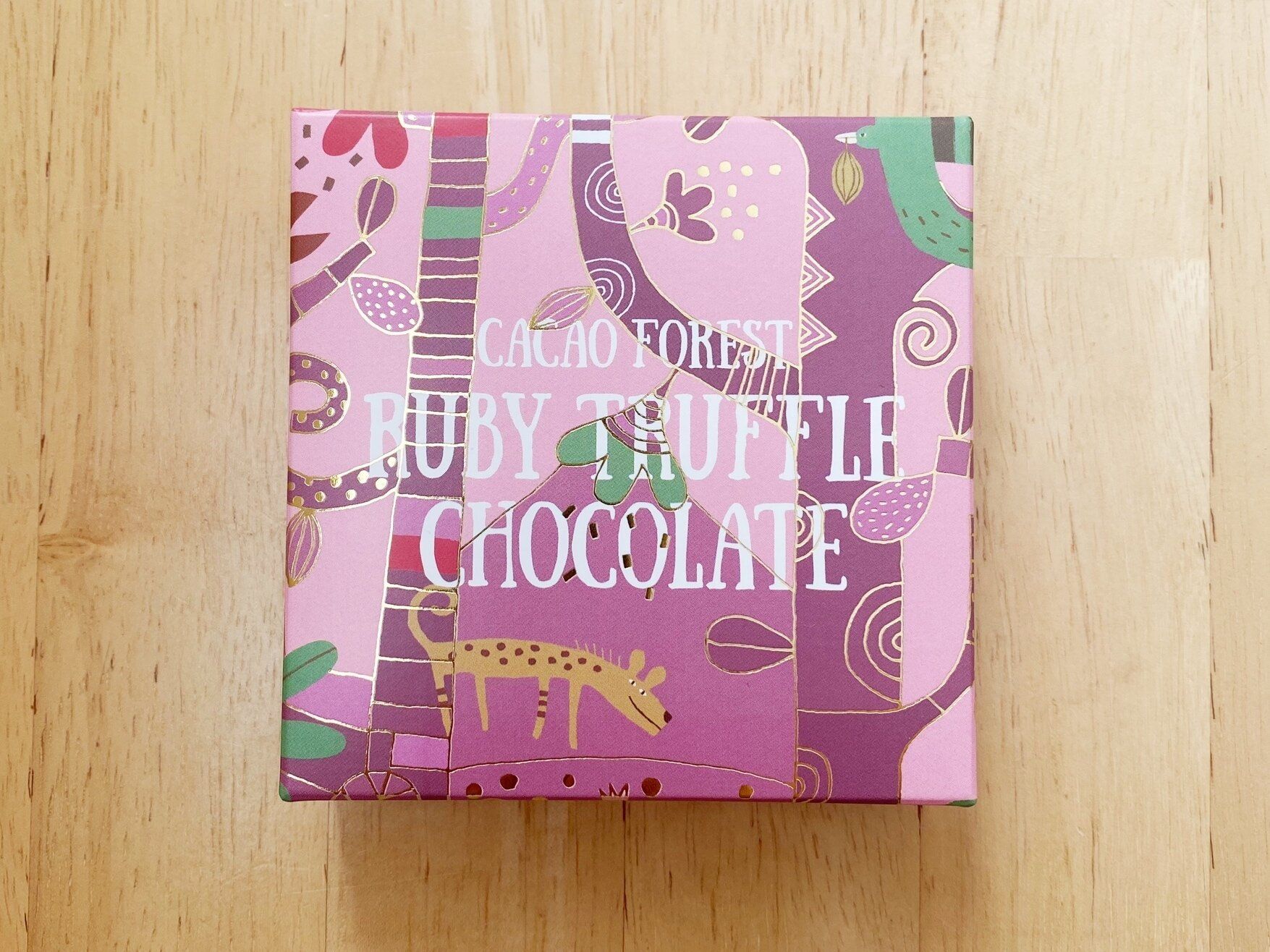 外側にコーティングされたルビーチョコレートはほんのり酸味があり、中のガナッシュチョコレートの甘さと相性抜群!口どけもよく非常においしいチョコレートです。300円台とは思えないレベルの高い商品。