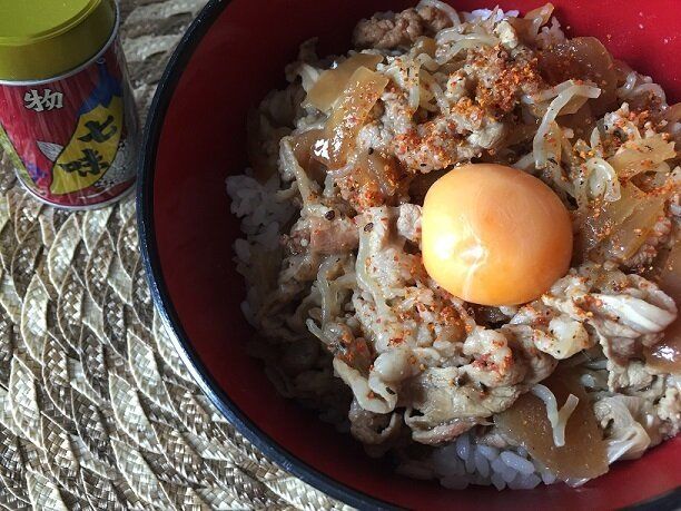 麺類などいろいろなものにトッピングしていますが、牛丼にかけたら最高においしかった!!この七味、とってもいい香りなんです。