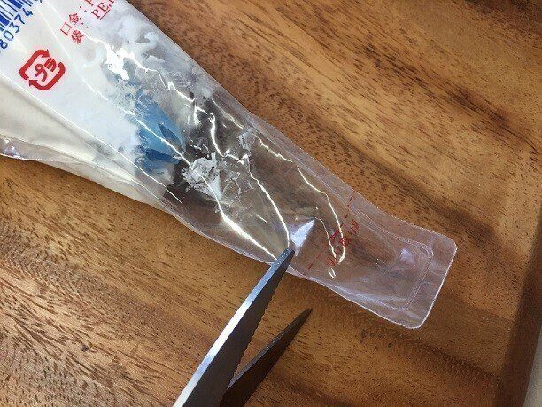 袋の先をちょこんとカットして、中に入っている口金を押し出してセット。