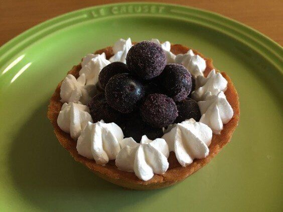 こちらもスーパーで購入、レアチーズタルトにホイップとブルーベリーをトッピング。シンプルなタルトがケーキ屋さんで買ったようなかわいいスイーツに!