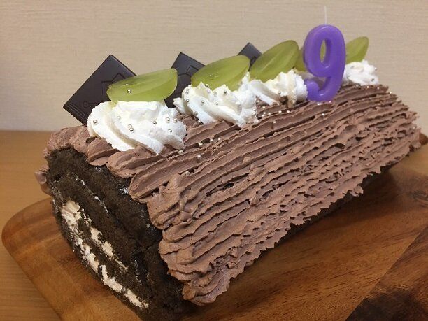 こちらは長女の9歳の誕生日につくったケーキです。リクエストがチョコケーキだったので、メインはチョコホイップですが、トップにアマンディホイップを絞って飾りつけしました。