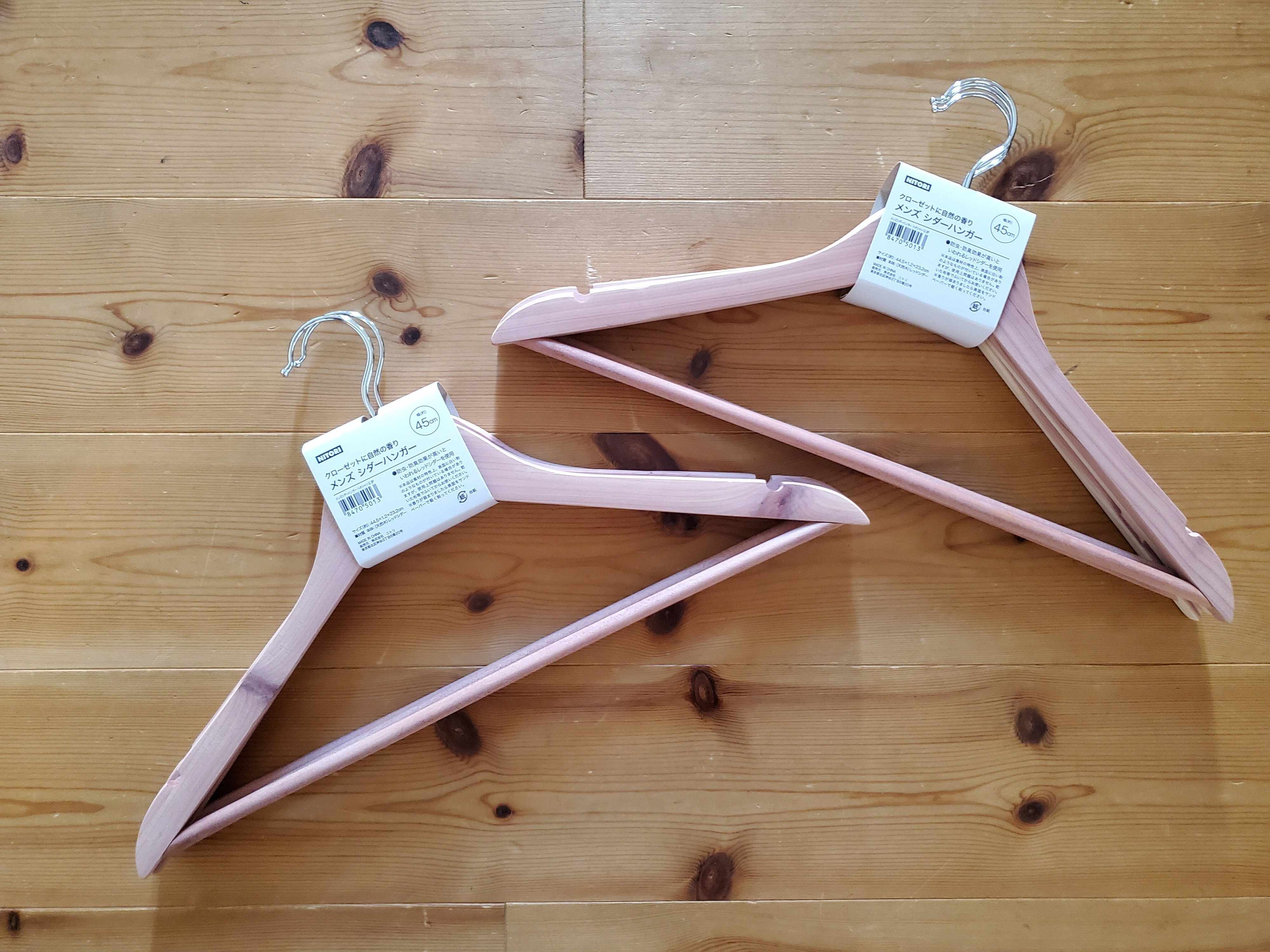 夫の通勤スーツ用にいいハンガーが欲しいと思っていたのでこちらのシダーハンガーを試してみました。
