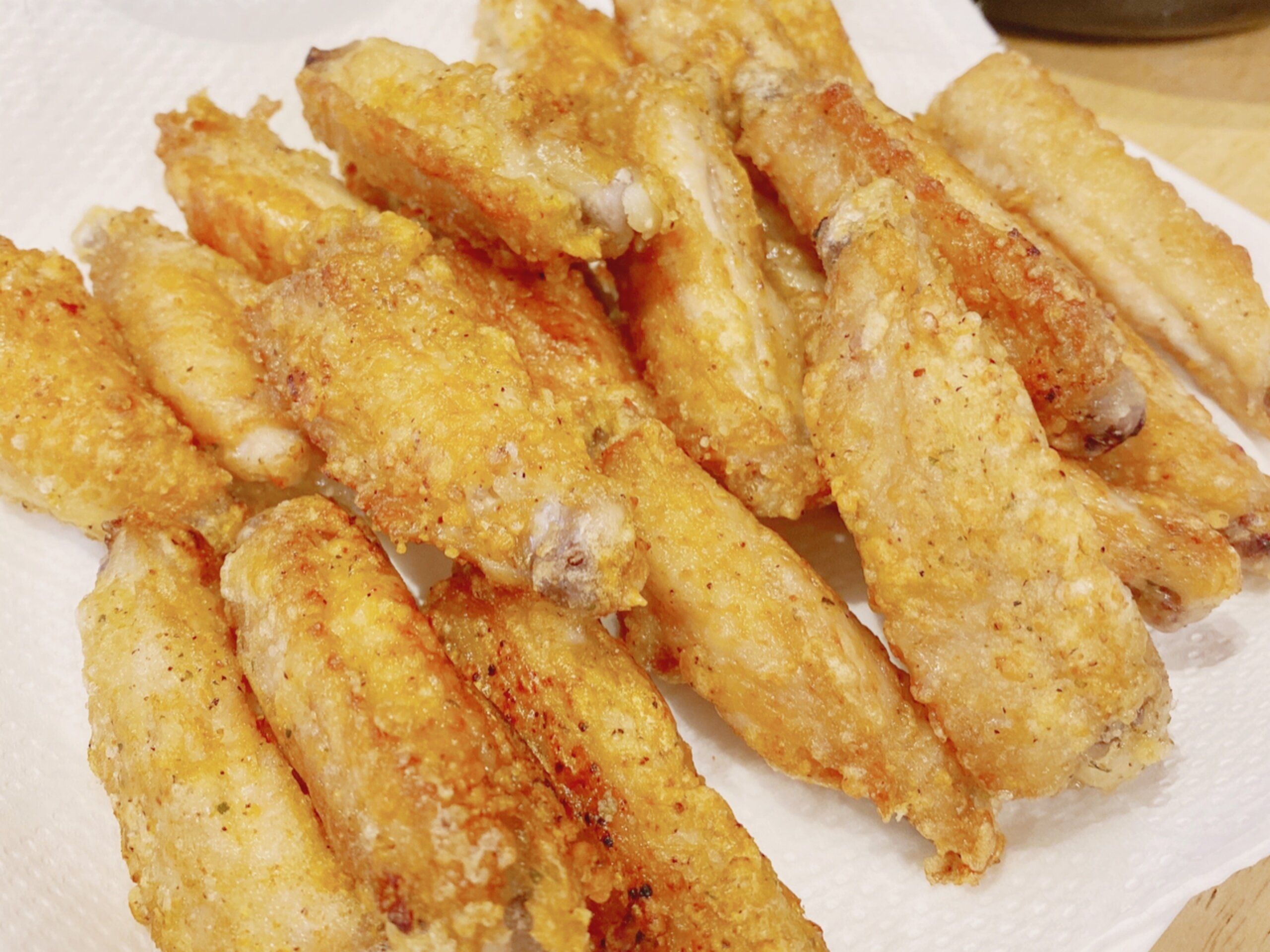 片栗粉とアヒージョシーズニングをまぜると、フライドチキン風の味わいの唐揚げ粉にも変身します!