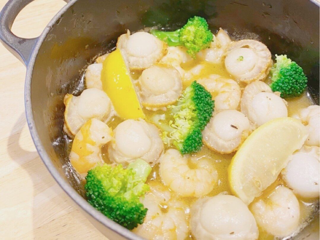 オリーブオイル200mlとシーズニング、お好きな具材を入れて10分程煮込むだけ!おうちで簡単にアヒージョがつくれます。