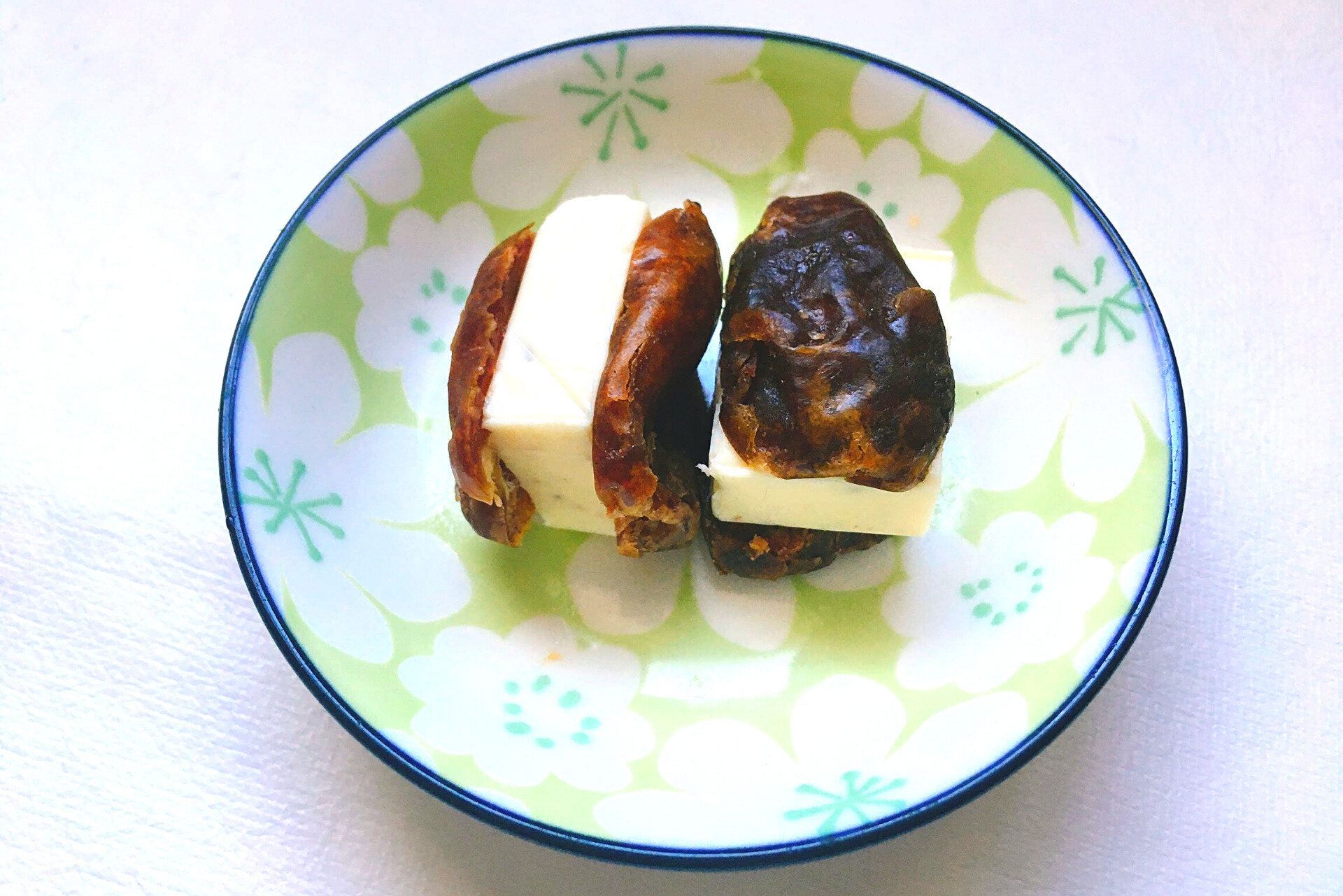続いて、ワインのおつまみにもピッタリな一品。デーツを半分にカットして、チーズをはさんでみました。濃厚なデーツの甘みにサッパリとしたチーズが合います。これは、ワインが進みそう!つい手が伸びるおいしさに、すっかりハマってしましました。