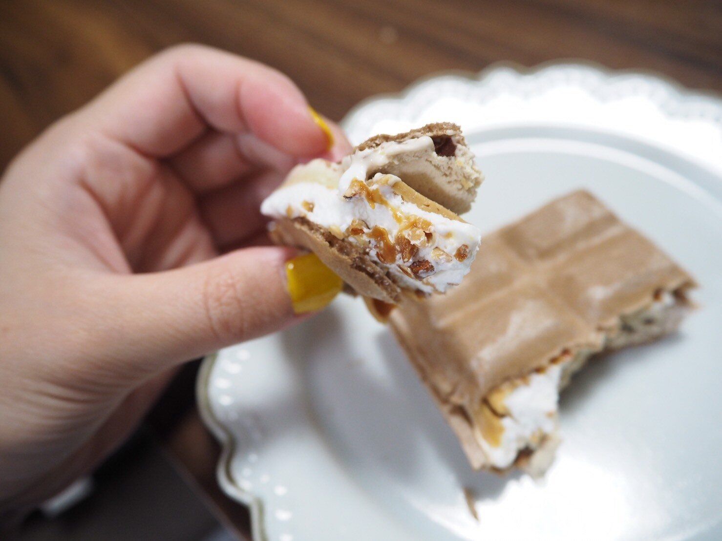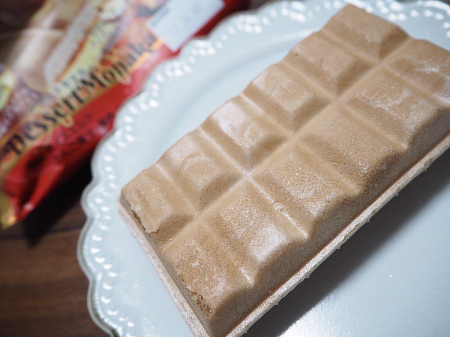 袋から取り出した感じは、普通のモナカアイスと変わりませんが、カットしてみると多層になっているのが分かります。