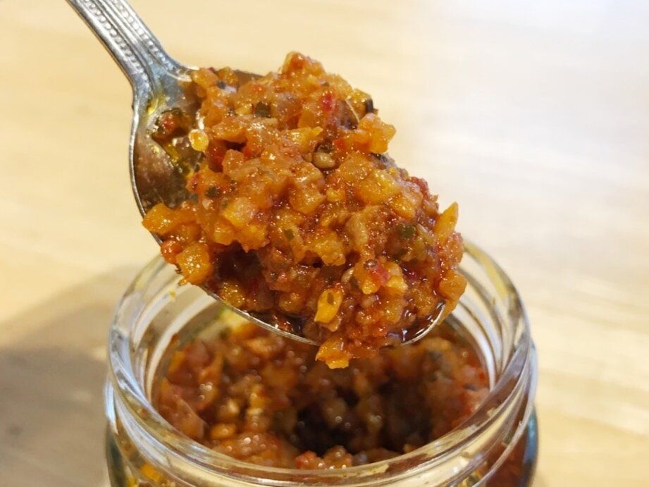 生姜、唐辛子、ニンニクをたっぷり使った香味豊かな調味料。