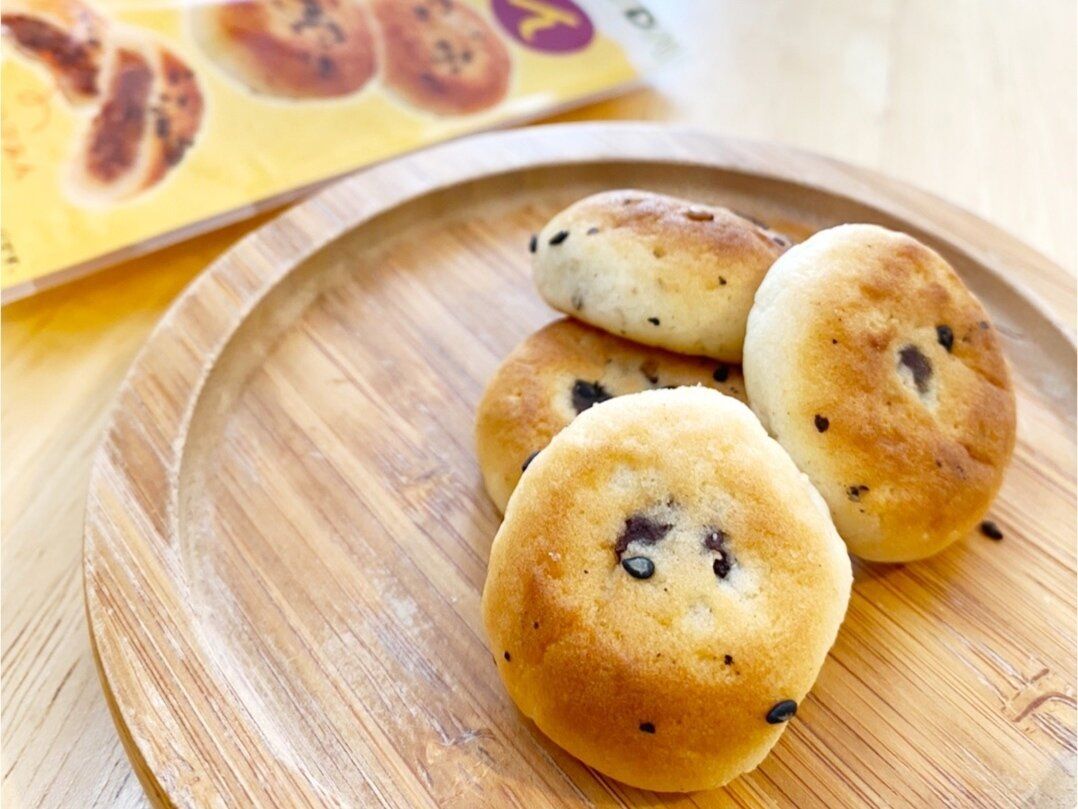 つぶあんをもちもち食感の生地で包んで焼いたひとくちサイズのあんぱん。