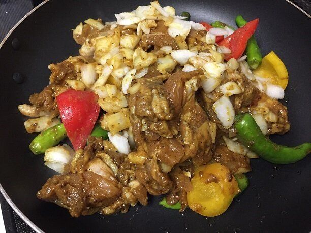 コストコで人気のさくらどり使用でスパイスの効いたカレーの味つけがしっかりついていて、パプリカやししとう、玉ねぎなどカラフルな野菜もたっぷり。