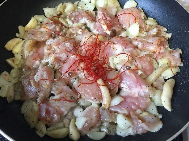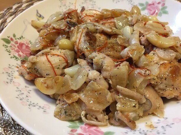 チキンはぷりっぷり、にんにくはほっくほく、玉ねぎも甘みがあってとてもおいしい!アンチョビの塩気と旨みでおつまみにもおかずにもなるメニューです。