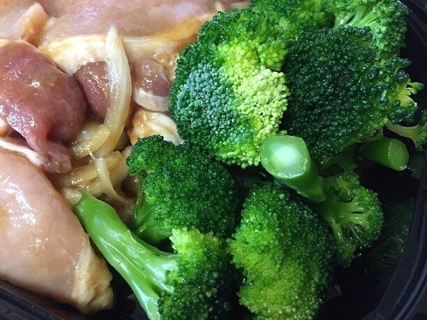 お肉をしっかり焼いて、ブロッコリーはお肉を取りだした後のフライパンで蒸し焼きにしました。