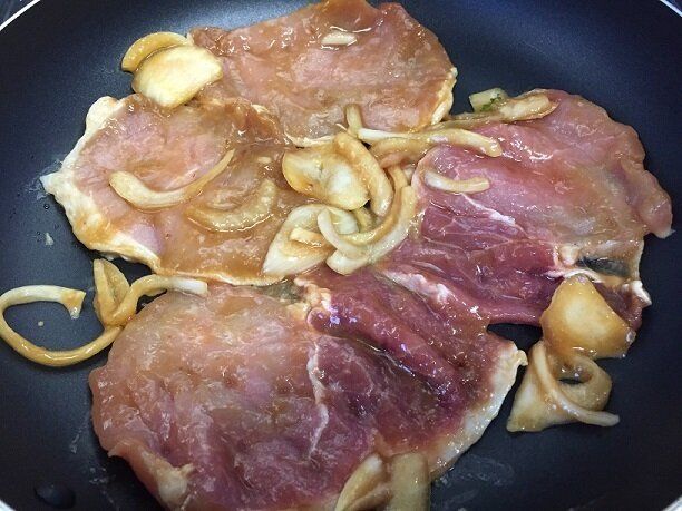 コストコの三元豚ロース肉が使用されていて、たっぷりの玉ねぎと生姜だれで味つけされているので、焼くだけでOK!