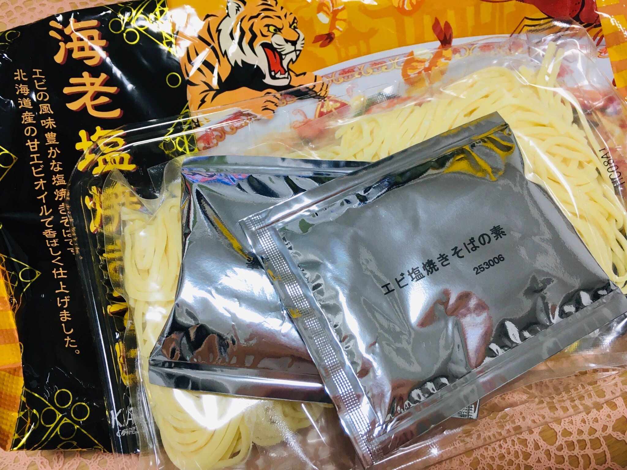 海老塩焼きそばは2食入りで244円です。
