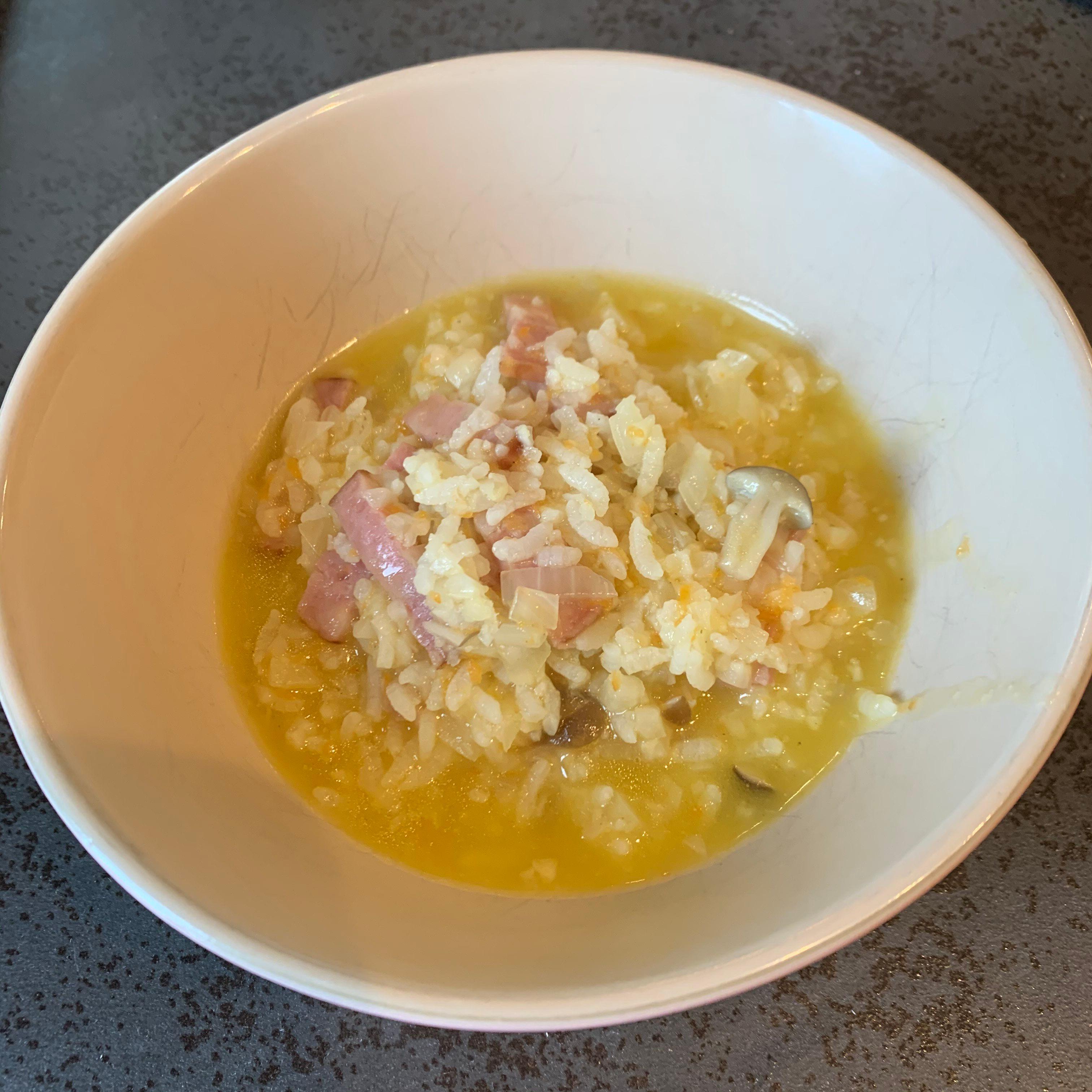 お米の半分を「お米の代わりに食べるカリフラワー」にして、スープごはんを作ってみました。