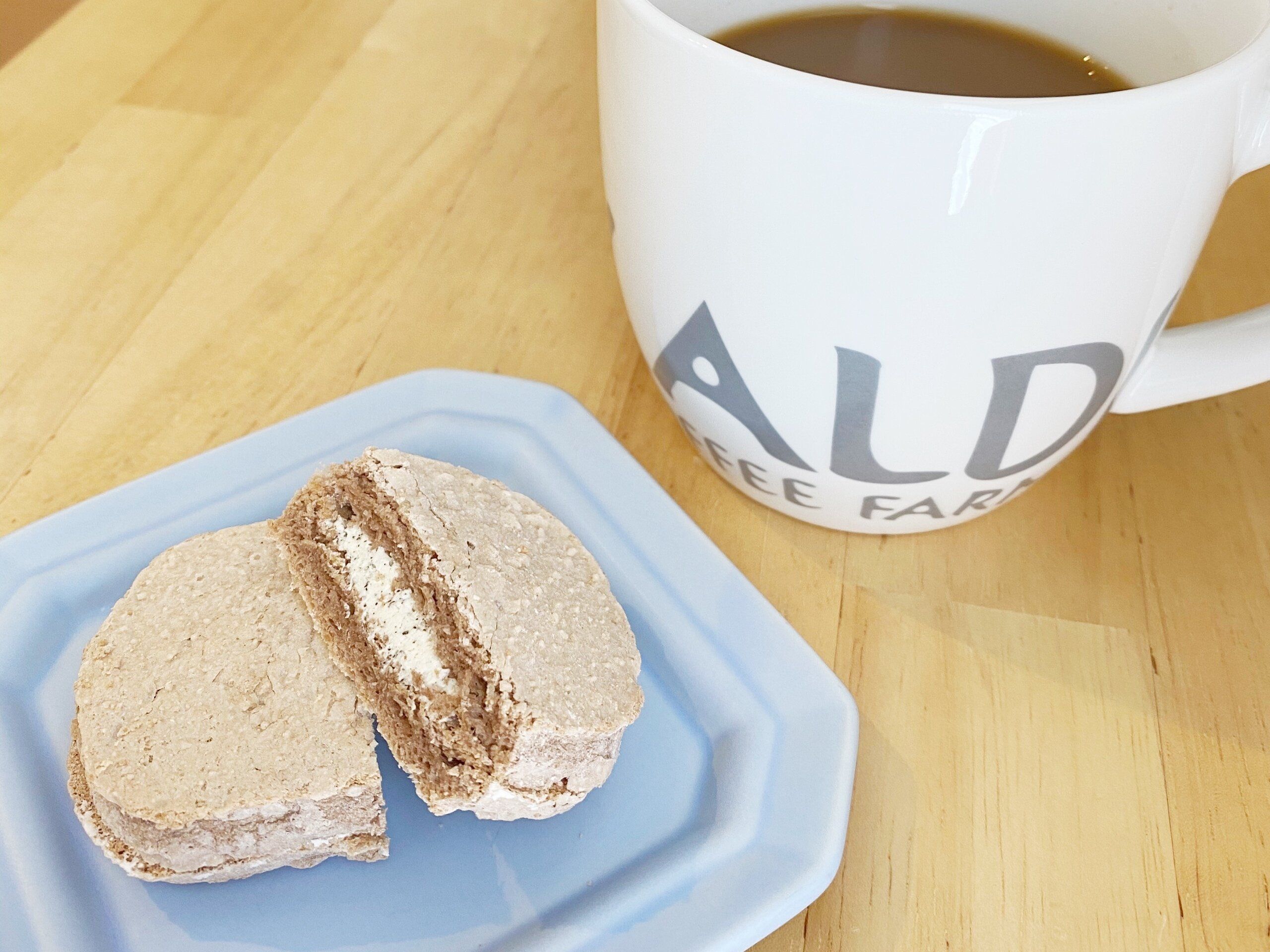 コーヒー風味のダックワーズですが、意外とコーヒーとの相性も良かったですよ。