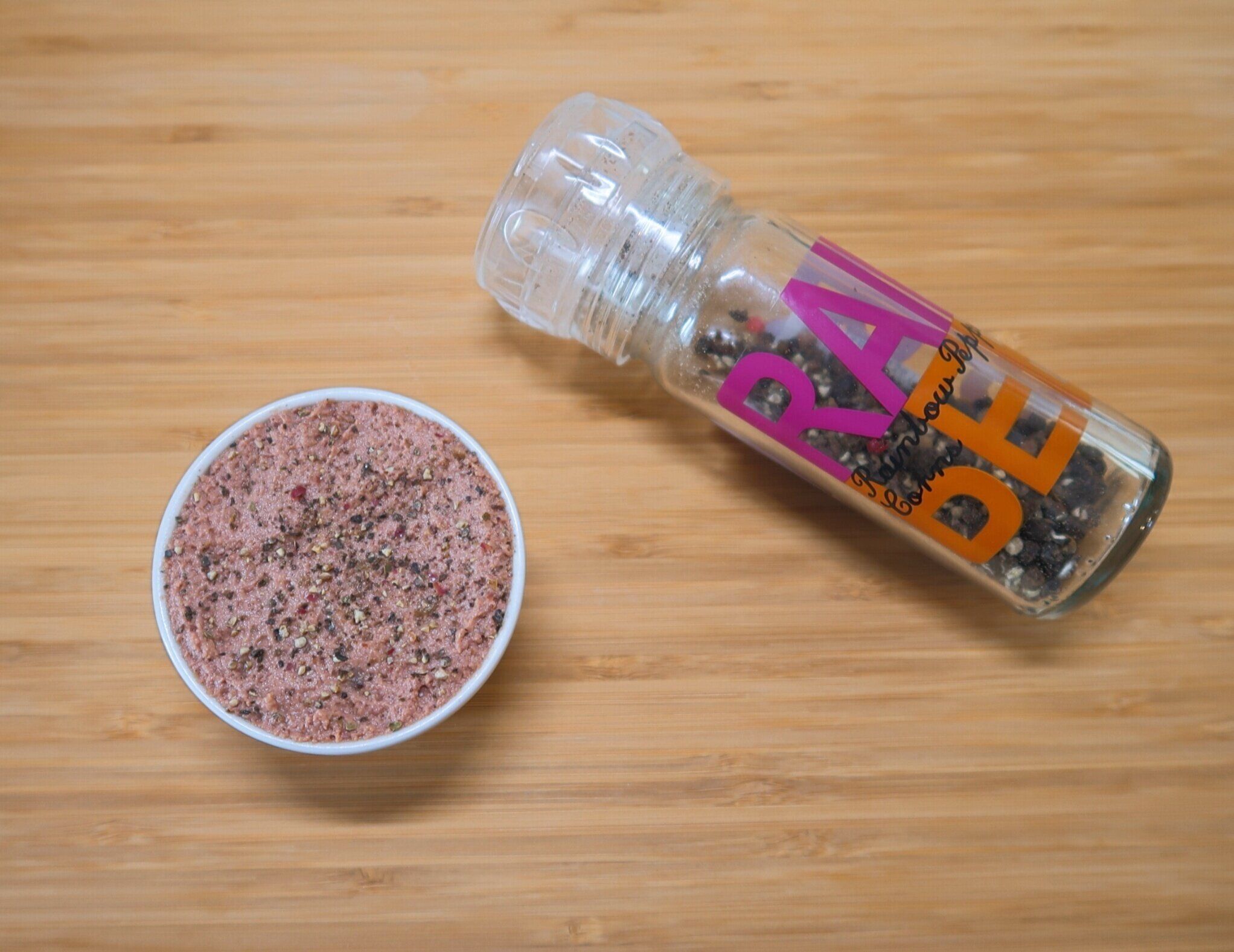 盛りつけたパテの表面にペッパーをふりかければ、ビストロのようなおしゃれな雰囲気に!味のアクセントにもなるのでおすすめです。