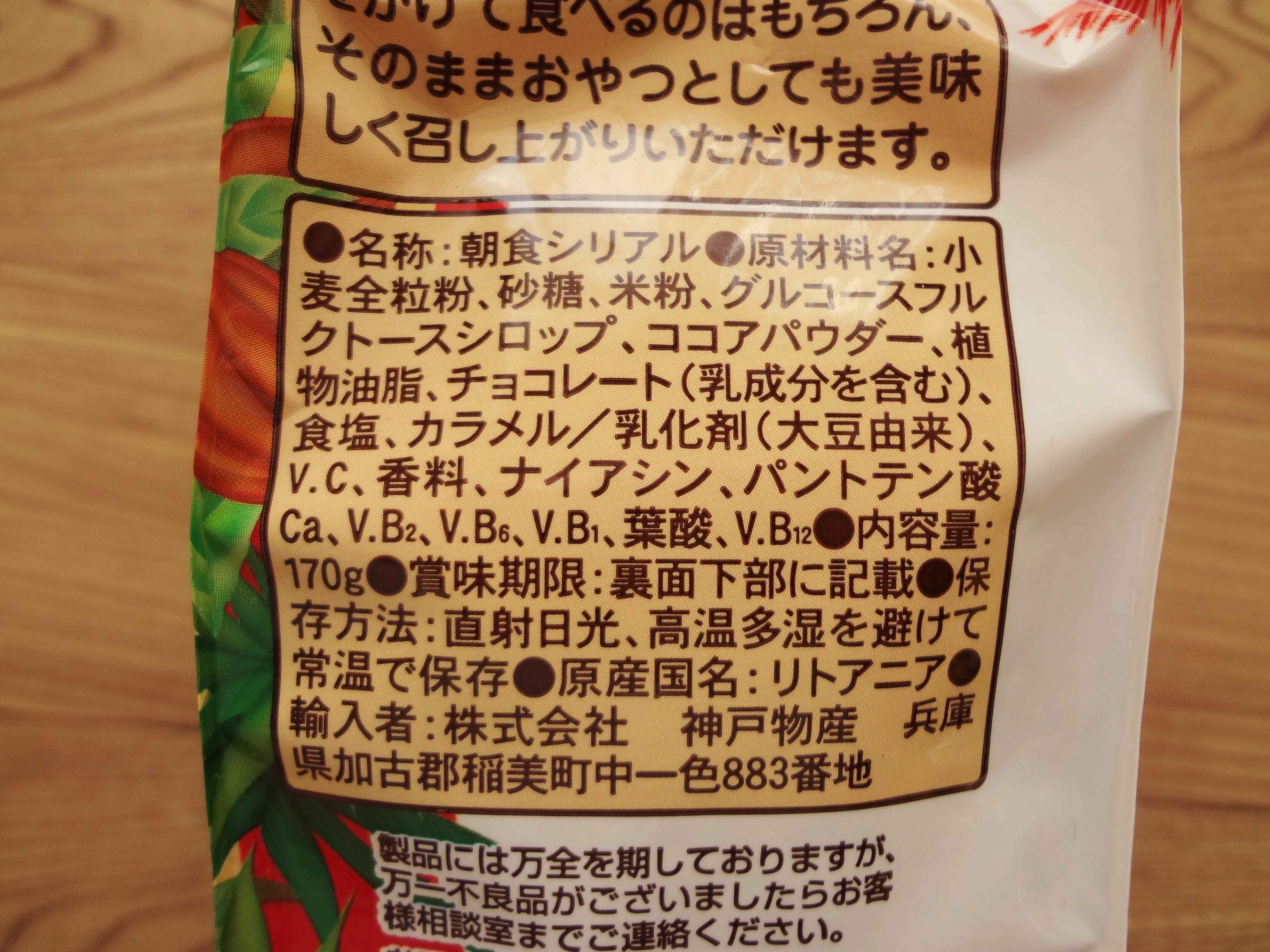 リトアニアからの輸入食品で、赤いパッケージに可愛いイラストが目にとまります。パッケージは日本のシリアルの半分くらいの大きさで、コンパクトになっています。