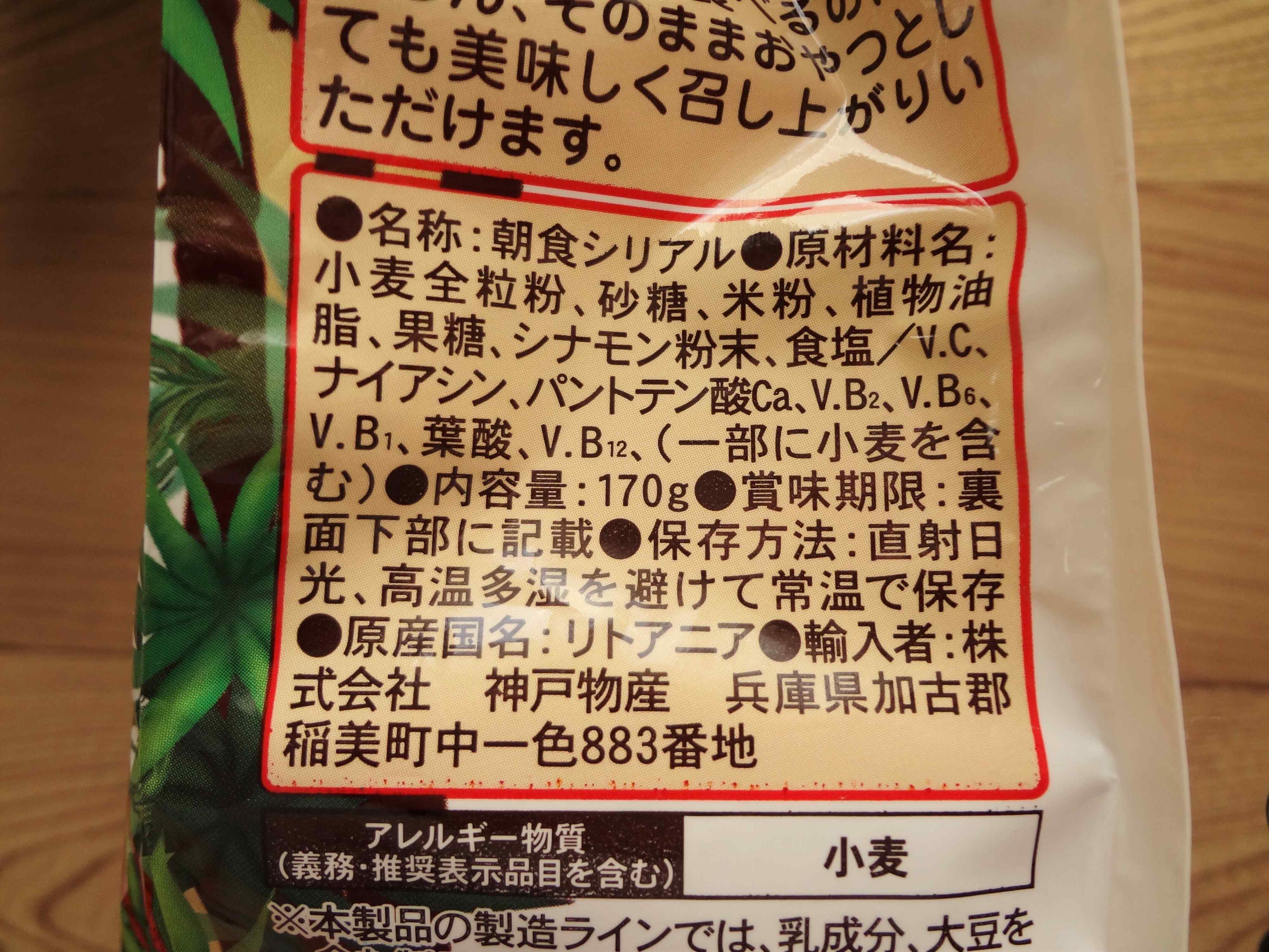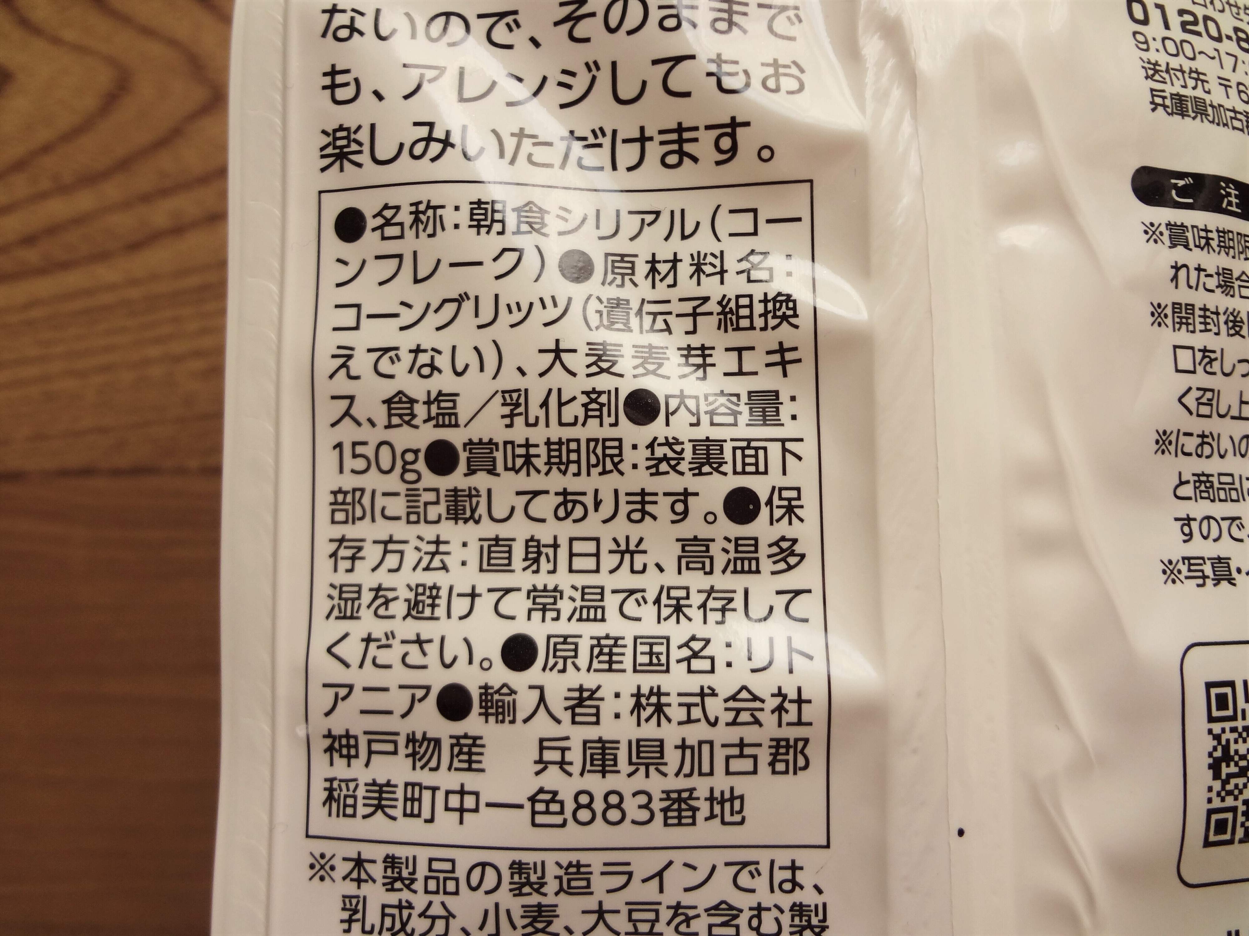 こちらもリトアニアからの輸入食品で、白色にコーフレークの写真が載っているシンプルパッケージです。