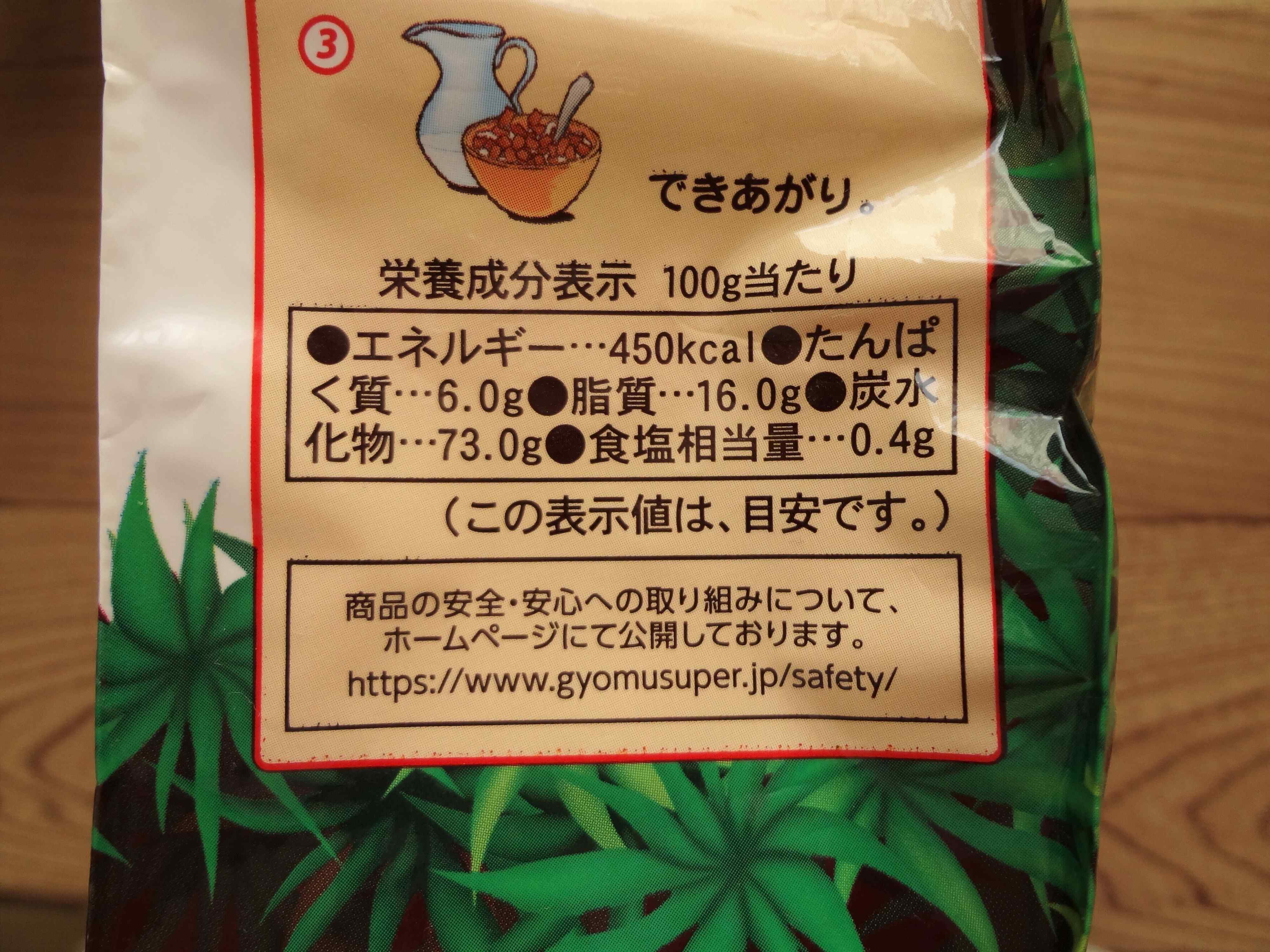 原材料名と栄養成分表示はこちら。