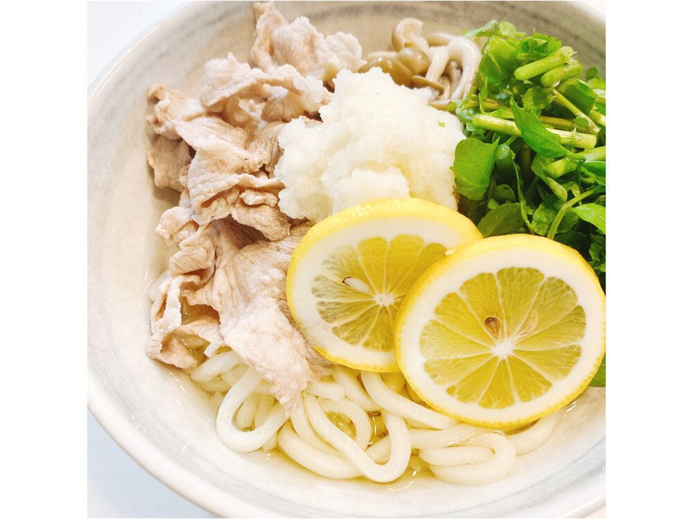 - 塩レモンおろしとゆで豚のうどん