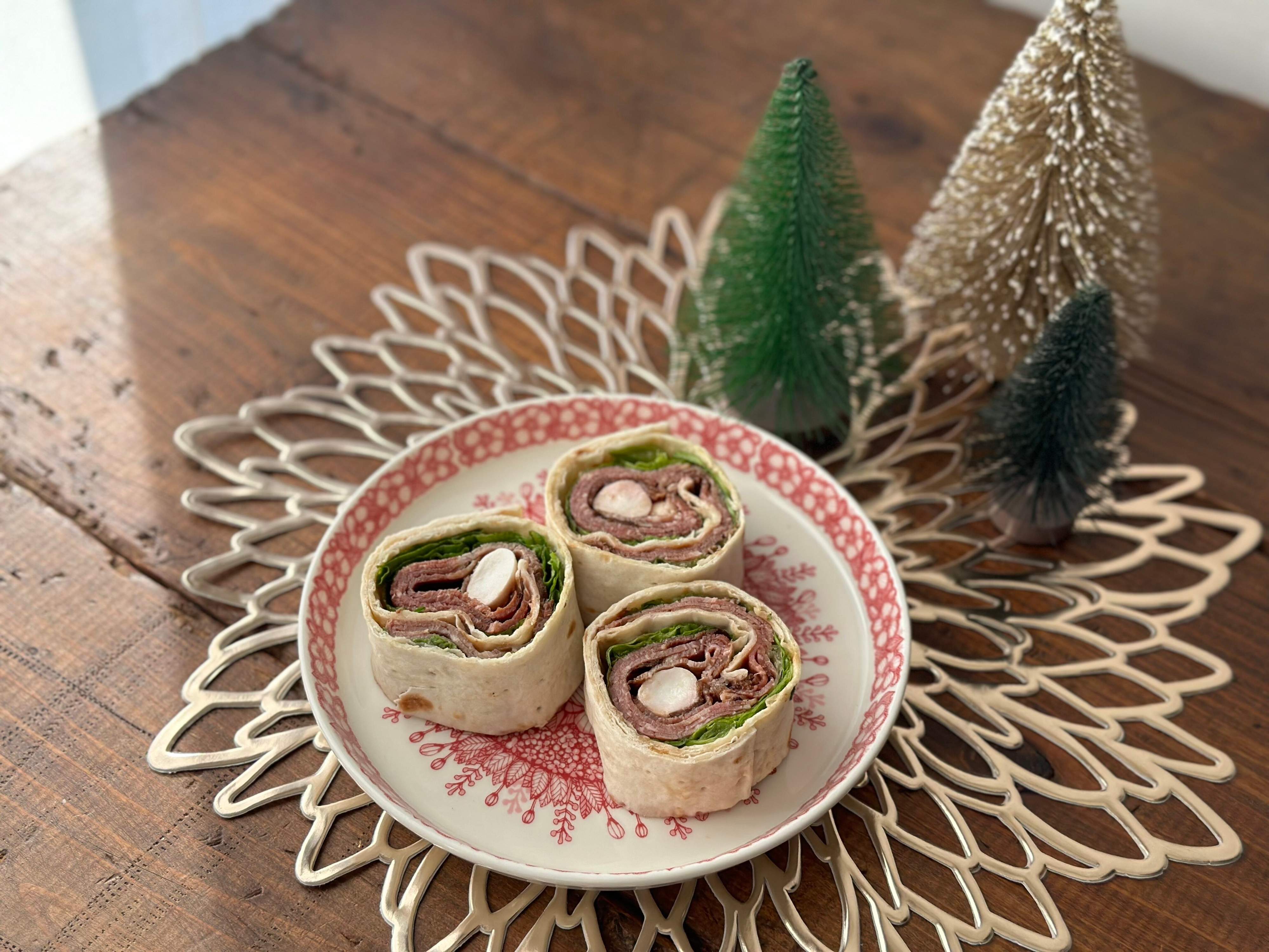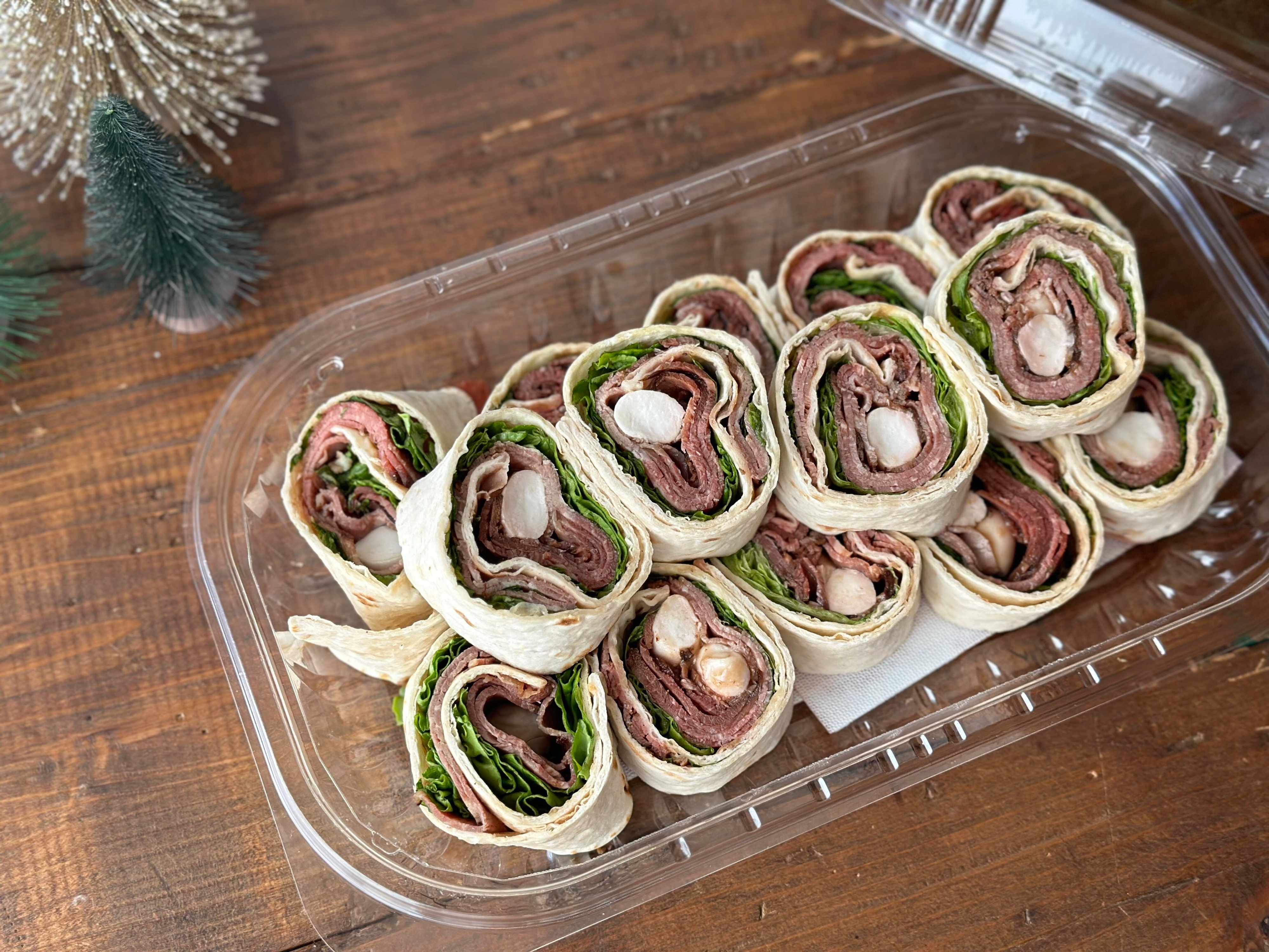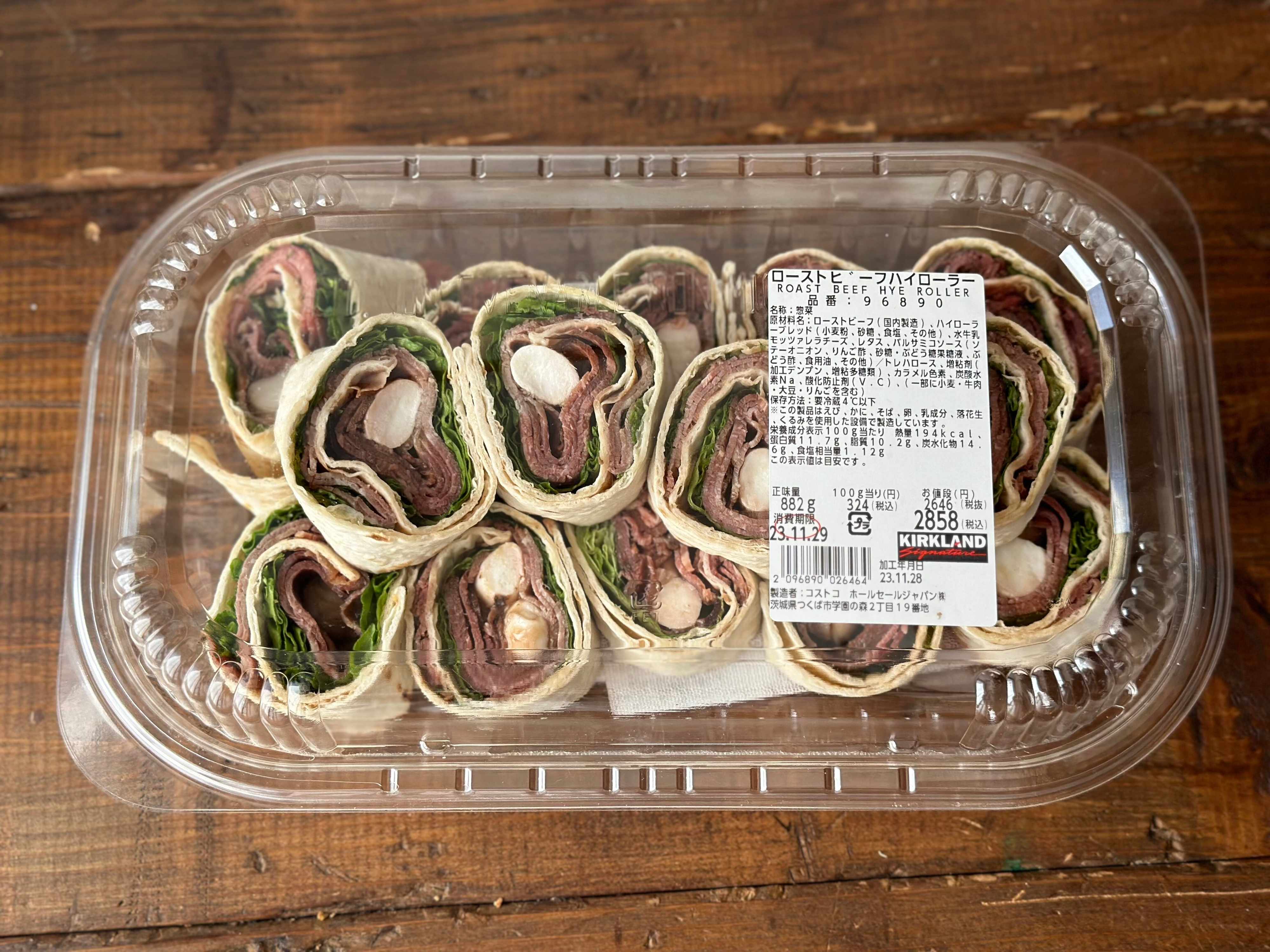 2023年バージョンは、ロメインレタスと、ローストビーフ、そして、モッツァレラチーズが巻かれていて、バルサミコソースで仕上げられています。