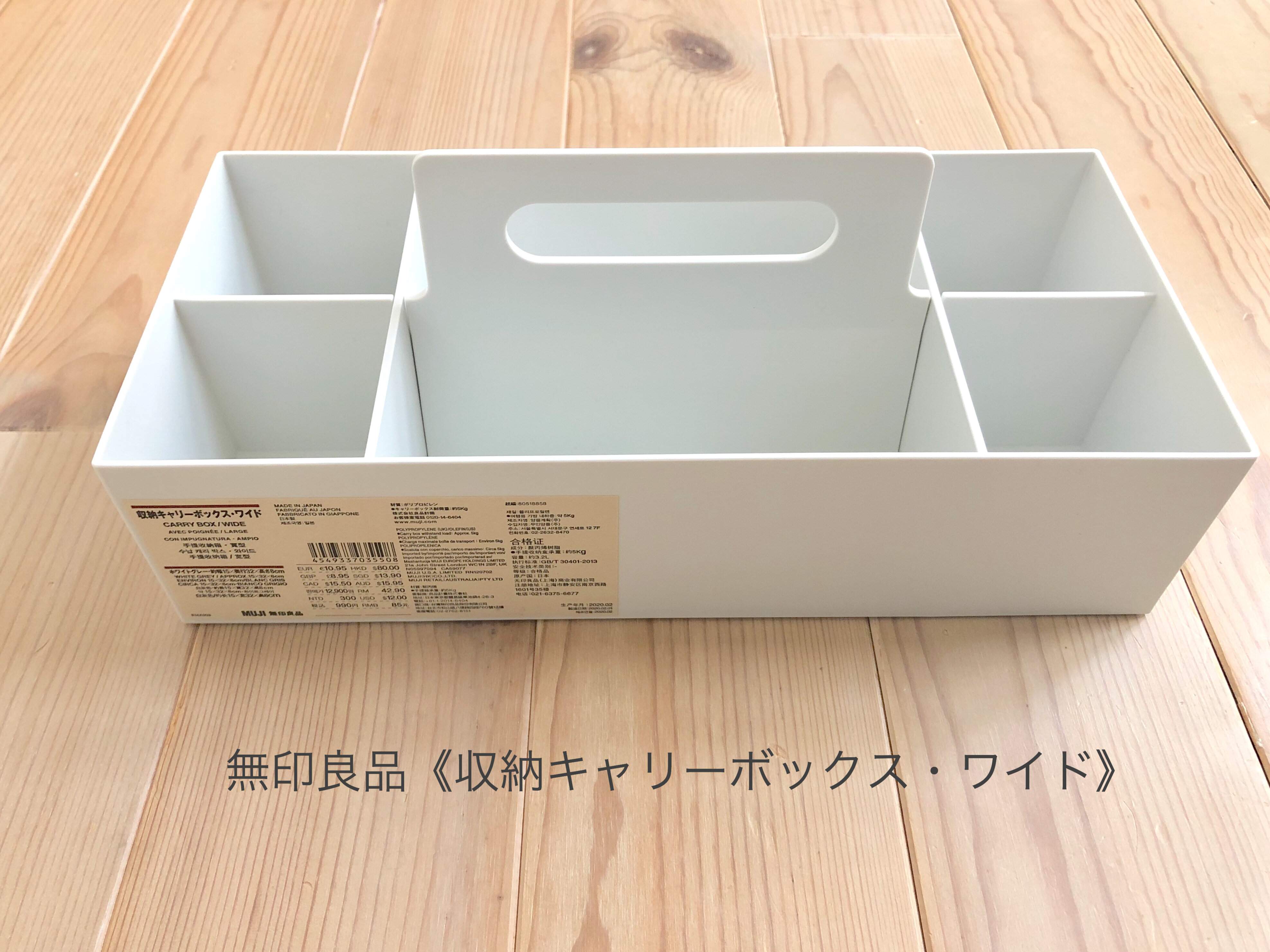 今回、お絵描きグッズの収納に使ったのが、無印良品の《ポリプロピレン収納キャリーボックス・ワイド・ホワイトグレー 》です。