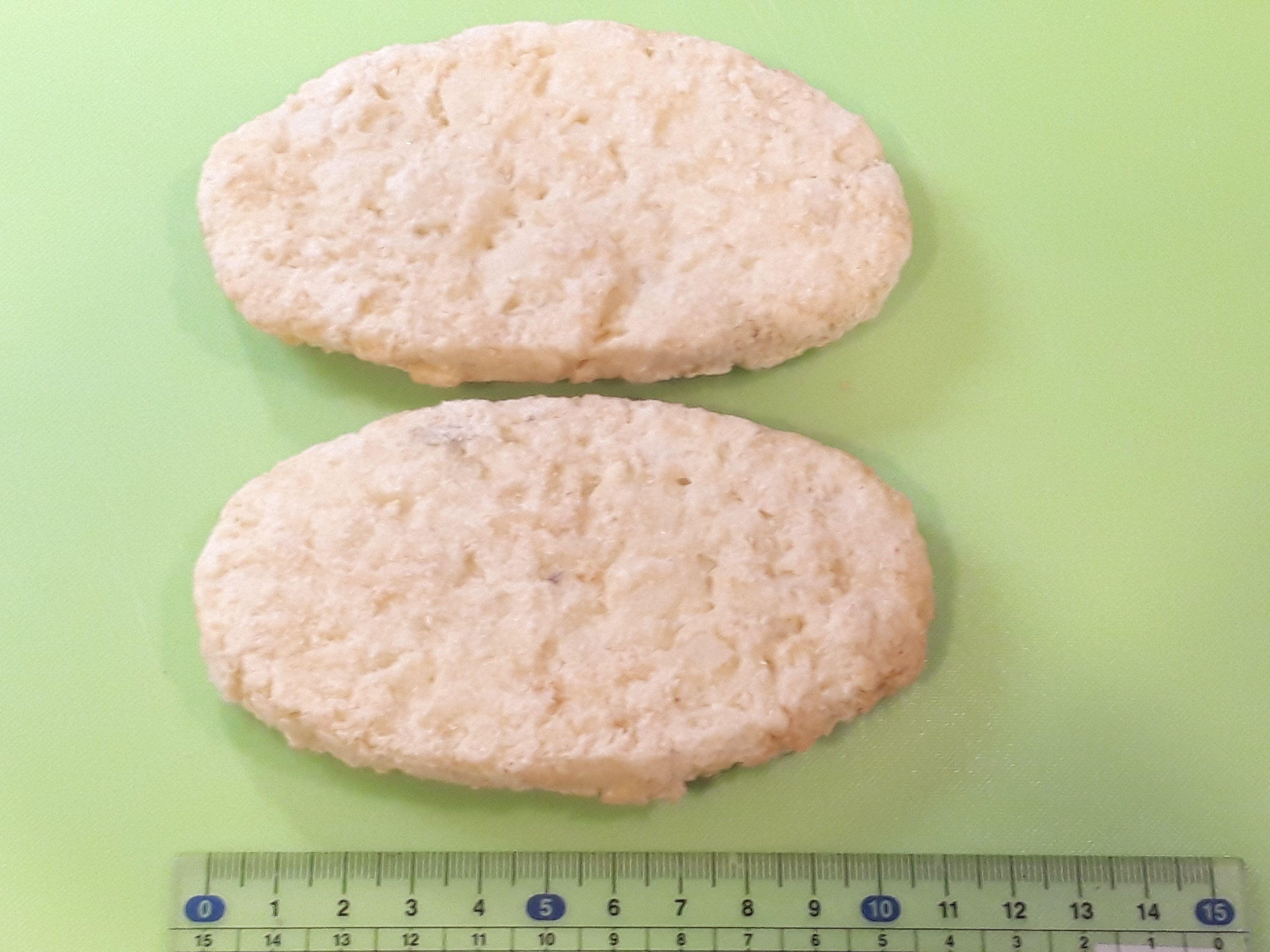 楕円形のハッシュブラウンが8枚。私は1枚で十分満足でき、朝食は半分で十分なことも多いです。